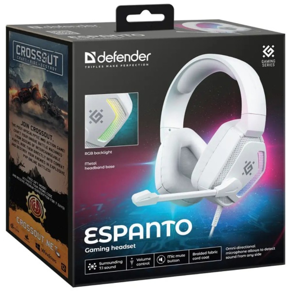 Навушники, Defender, Espanto, RGB, USB, White, 62470