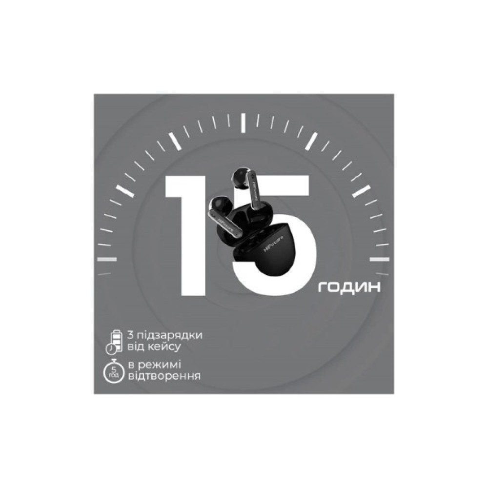 Акумулятора вистачає на 5 годин безперервної роботи, а компактний кейс дозволяє підзарядити їх ще три рази, надаючи в загальному до 20 годин автономності. З функцією швидкого заряджання, всього 15 хвилин у кейсі забезпечать вам ще годину прослуховування. Інтерфейс зарядки через USB Type-C підвищує зручність і швидкість заряджання.