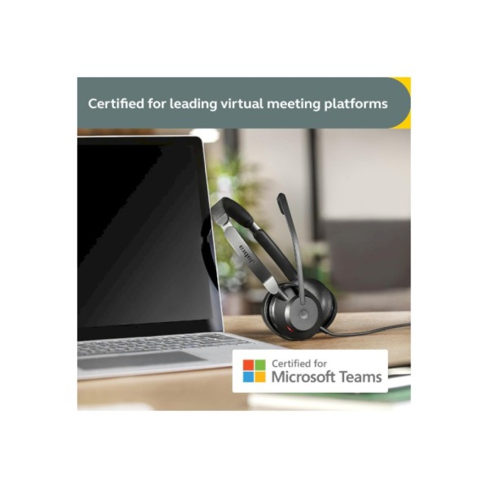 Гарнітура пропонує на 48% кращу шумоізоляцію, сертифікована MS та оснащена кнопкою Teams для легкої співпраці. Міцні та гнучкі завдяки міцним матеріалам, вони також оснащені індикатором зайнятості та технологією, що дозволяє їх оновлювати, для тривалого використання.