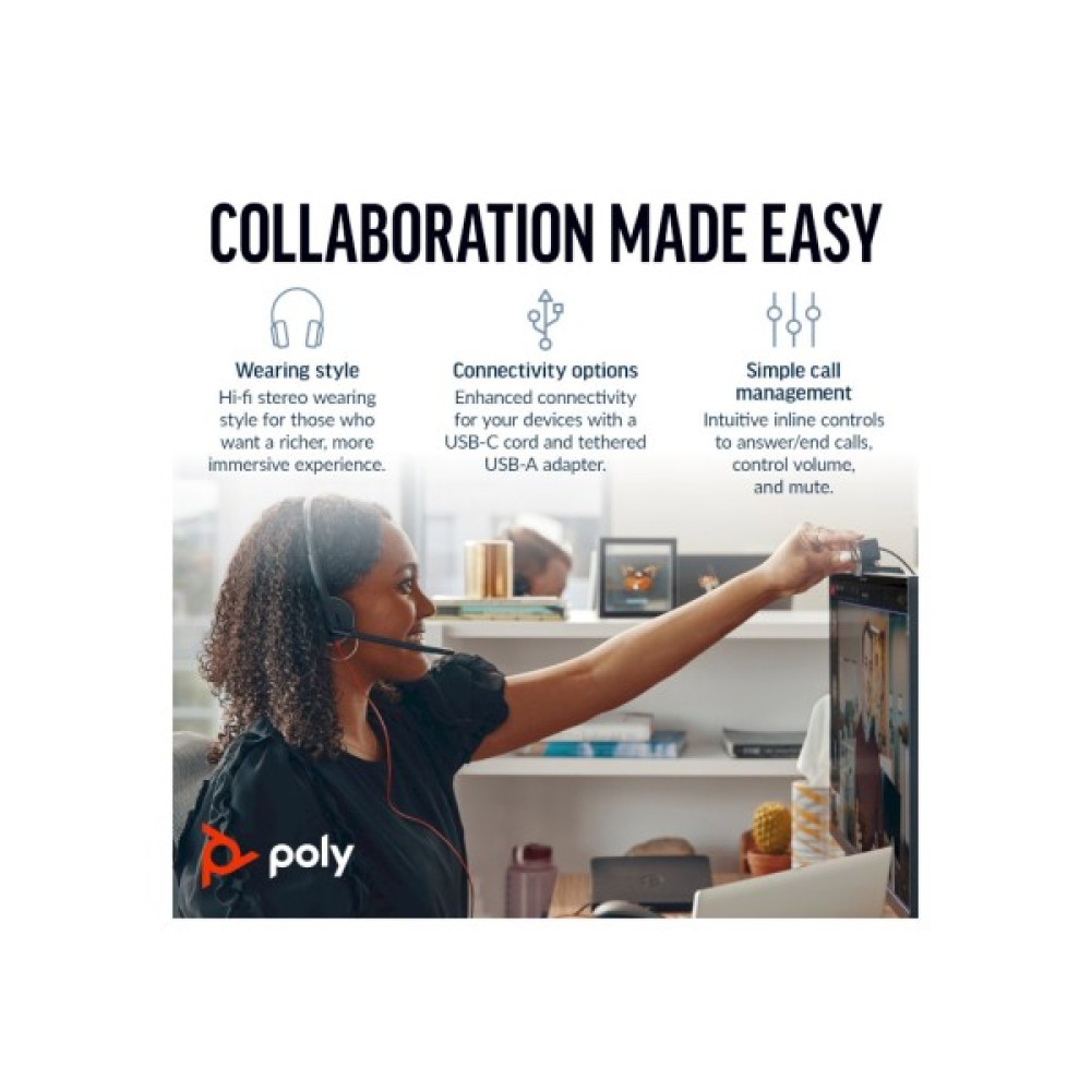 З цими навушниками ви зможете досягти нового рівня продуктивності, скориставшись передовими технологіями зв'язку та відчувши вищий комфорт, ніж будь-коли. Обираючи Poly Blackwire 3220, ви інвестуєте в якість, надійність та відмінні враження від звуку, які підняті на новий щабель.