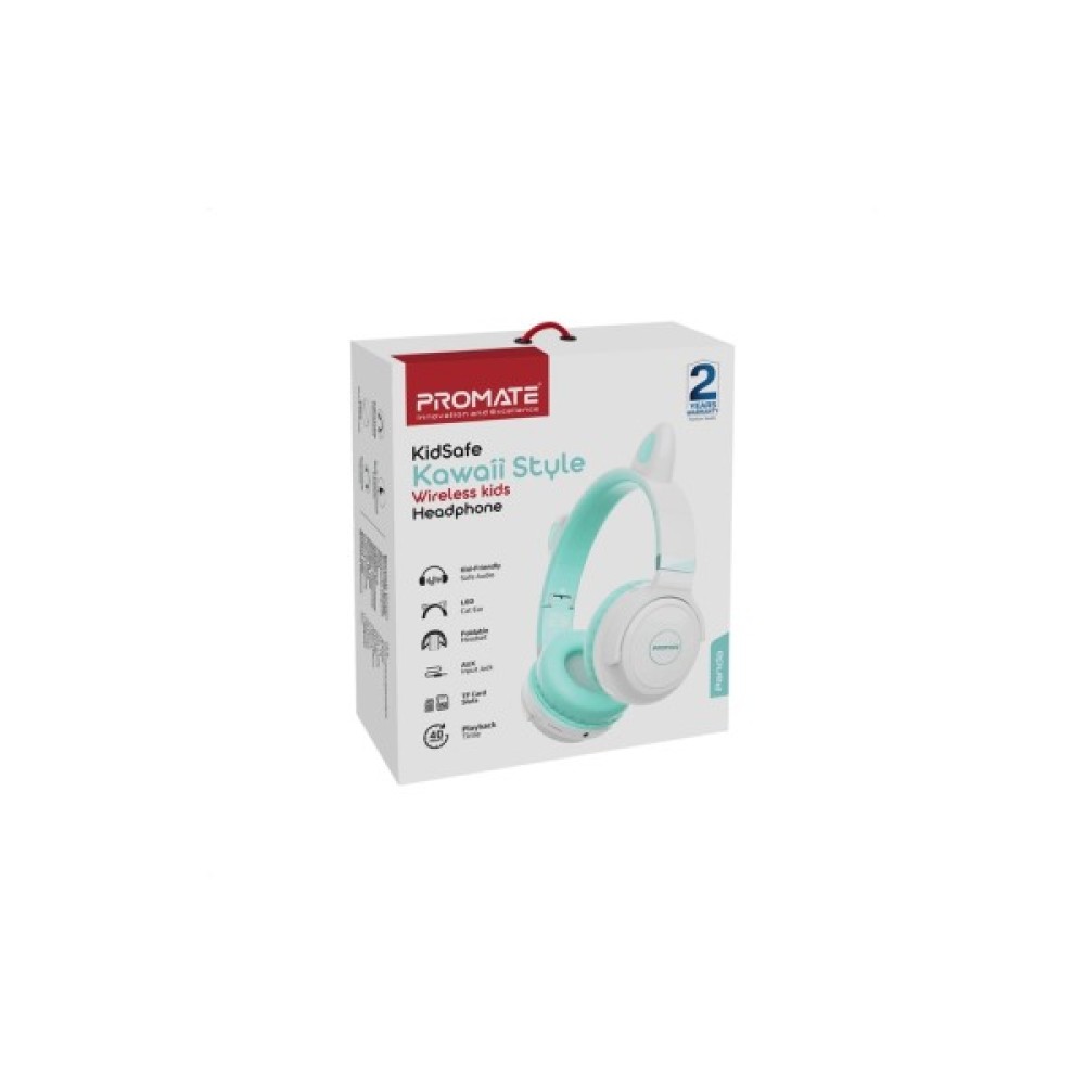 Бренд Promate подбав і про дизайн, що захоплює: милі котячі вушка з LED підсвіткою стануть улюбленою деталлю вашої дитини і створять незабутній стиль. Навушники виконані в свіжому блакитному кольорі, що додатково підкреслює їх унікальність.
