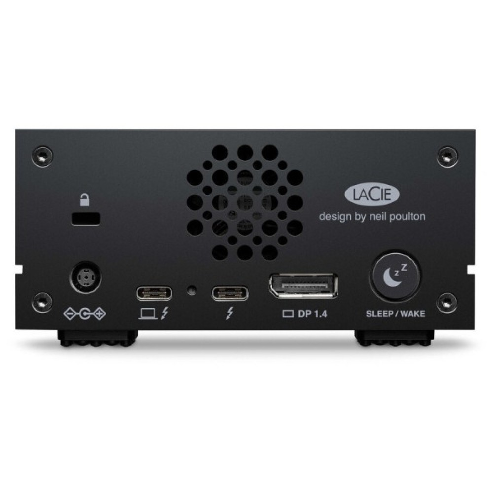 Док-станція 1big ємністю 4 ТБ від LaCie була розроблена як епіцентр робочих процесів у форматі 4K. Він поєднує в собі 3,5-дюймовий жорсткий диск Seagate IronWolf Pro 7200 об/хв SATA, що забезпечує швидкість передачі даних до 280 МБ/с, два порти Thunderbolt 3, порт USB 3.0 Type-A, вихід DisplayPort 1.4 для 8K/60 Гц , Відео 4K / 120 Гц, 1080p та 720p, а також слоти для карт пам'яті SD та CompactFlash. Завдяки алюмінієвому корпусу та терморегульованому вентилятору робочі температури залишаються низькими. У той час як один з портів Thunderbolt 3 використовується для підключення 1big Dock до вашої сумісної системи, що працює як мінімум на Windows 10 або MacOS 10.12, інший можна використовувати для послідовного підключення до шести додаткових пристроїв або забезпечення до 70 Вт потужності заряджання. У комплект LaCie 1big Dock ємністю 16 ТБ входять кабель Thunderbolt 3 40 Гбіт/с, кабель USB 3.0 та зовнішній блок живлення.