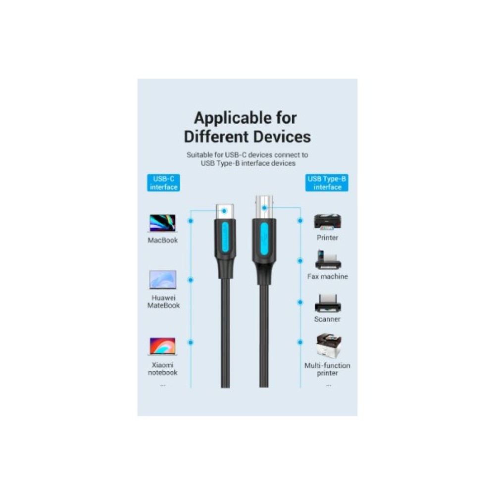 Кабель для принтера USB-C 2.0 to BM 2.0m 2.4А 480Mbps Vention (CQUBH)