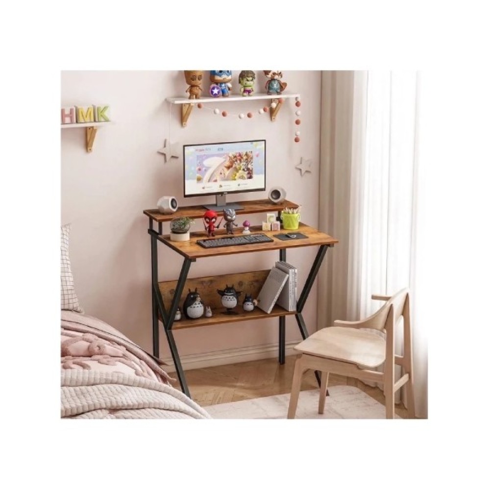 Цей стіл виглядає як компактне, але добре організоване рішення для домашнього офісу або дитячої кімнати.