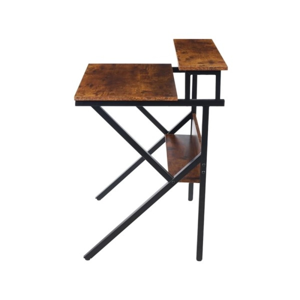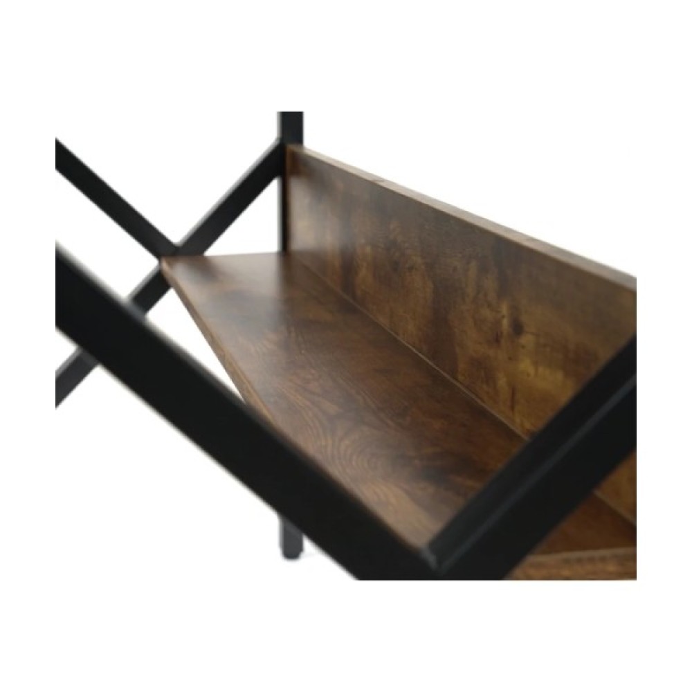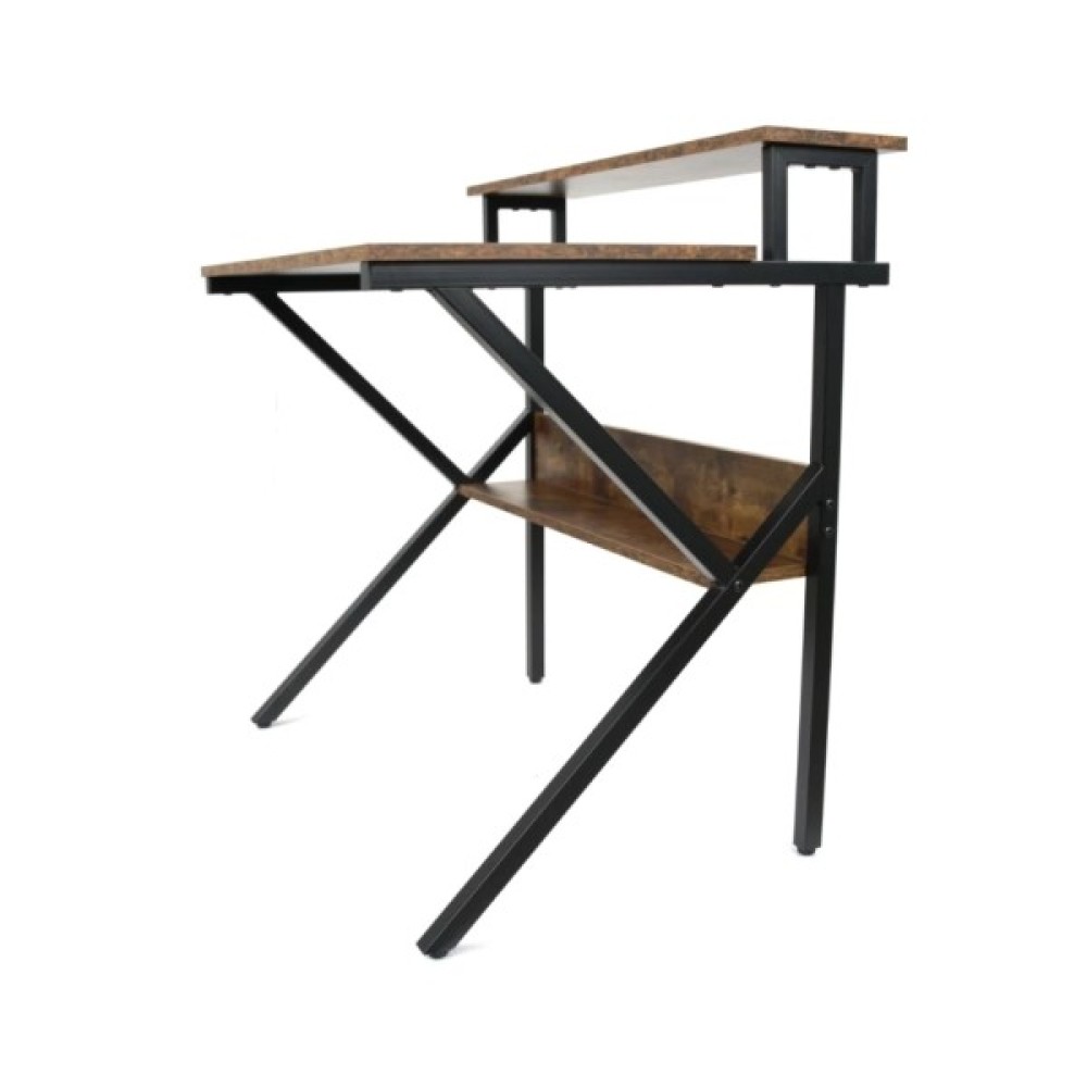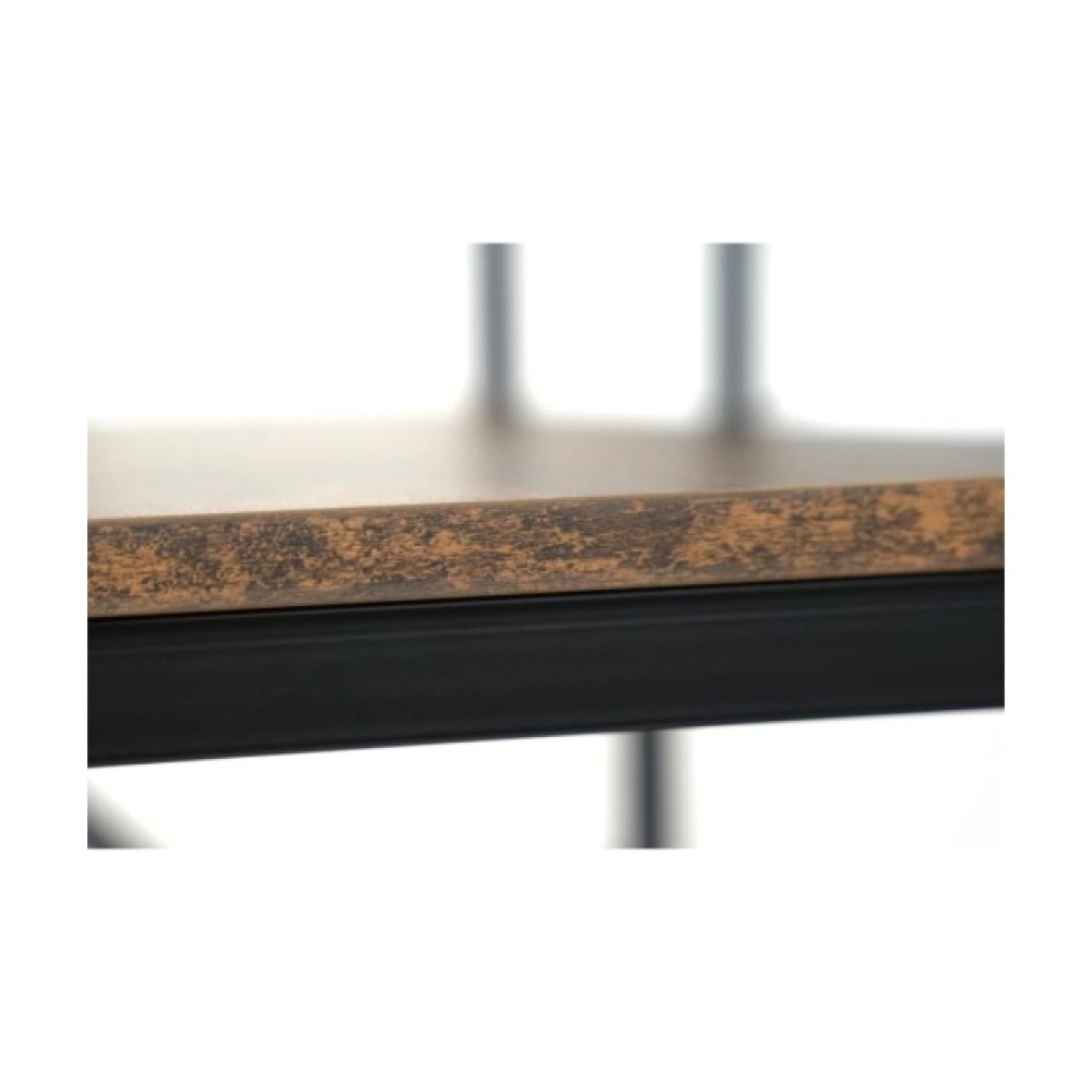 Стіл комп'ютерний АКЛАС Вікні VKS-80175 80x60 (Горіх) це сучасний комп'ютерний стіл, що поєднує металевий каркас з елементами під дерево. Стіл має стільницю та полиці, виготовлені із МДФ. Каркас столу виконаний з металу пофарбований в чорний колір. Загальний вигляд столу мінімалістичний, але функціональний. Поєднання металу та текстури дерева робить його універсальним для різних інтер'єрів.