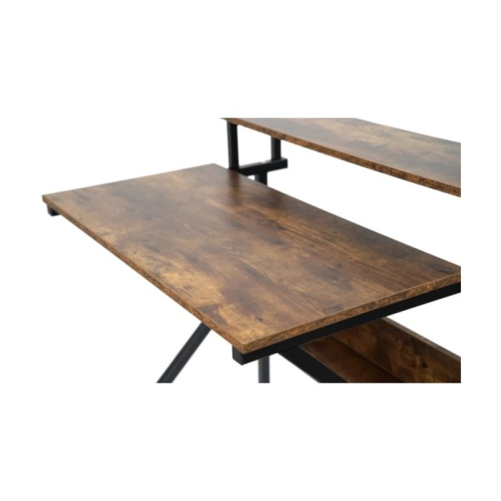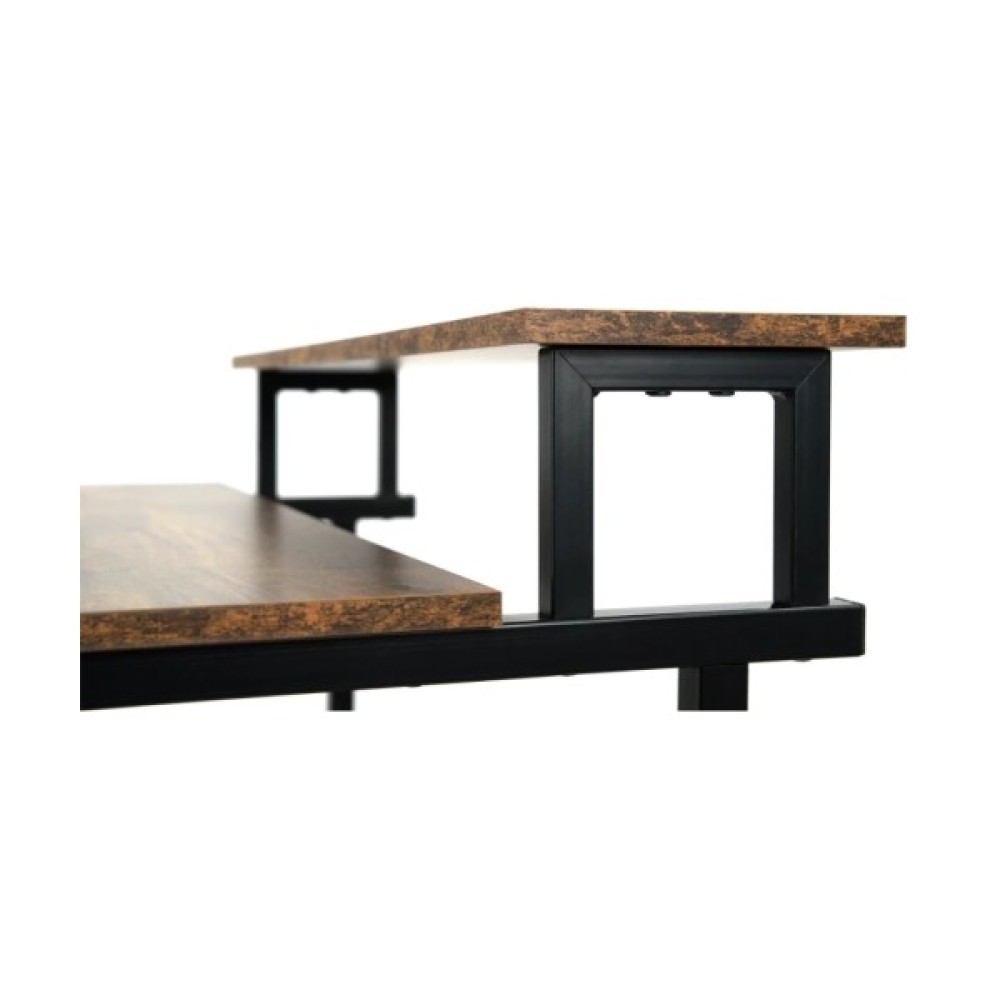 Під основною стільницею, ближче до основи, розташована ще одна відкрита полиця, яка може використовуватися для зберігання книг, документів або інших предметів.