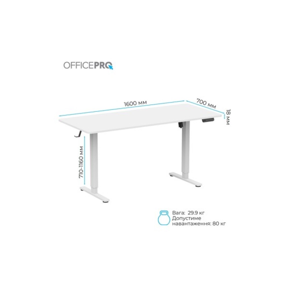 Стіл із електрорегулюванням висоти Officepro серії ODE1670 розроблений для бездоганної інтеграції в будь-який домашній інтер'єр або корпоративне середовище, пропонує ідеальне поєднання функціональності, довговічності та доступності. Завдяки потужному двигуну стіл забезпечує плавне, тихе та надійне регулювання висоти одним натисканням кнопки.