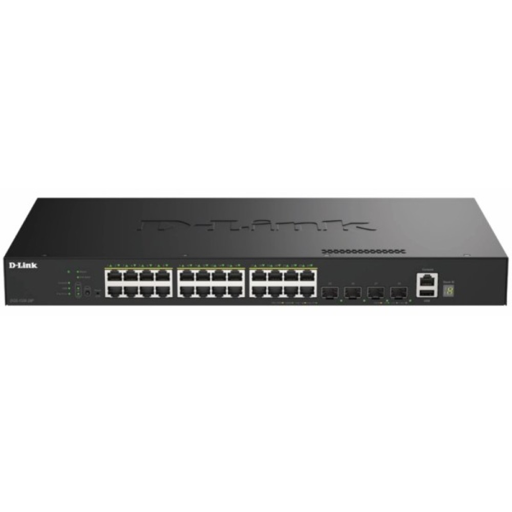 Потужний L3-керований комутатор D-Link DGS-1530-28 має 24 порти Gigabit Ethernet та 4 порти 10G SFP+ для високошвидкісного з'єднання. Забезпечує продуктивність до 128 Гбіт/с, має підтримку VLAN, ACL, захисту від DDoS, 802.1X, функції SNMP, RMON і інші засоби керування.