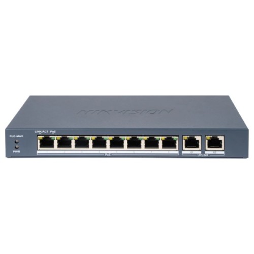 Можливості підключенняКомутатор оснащений 8 downlink-портами RJ45 зі швидкістю 100 Мбіт/с, що підтримують живлення за технологією PoE стандартів IEEE 802.3af/at. Загальний енергетичний бюджет — 110 Вт, чого достатньо для підключення кількох камер підвищеної потужності. Два gigabit uplink-порти забезпечують швидке передавання трафіку в основну мережу та зменшують затримки.