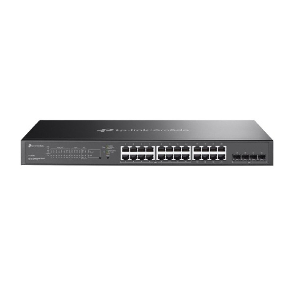 TP-Link SG2428LP – це керований гігабітний комутатор із 28 портами, з яких 16 підтримують PoE+ (загальний бюджет – 150 Вт). Оснащений 4 SFP-слотами, безвентиляторною конструкцією для безшумної роботи, підтримкою VLAN, QoS, ACL, IGMP, статичною маршрутизацією та централізованим керуванням через Omada. Відмінний для корпоративних мереж та систем відеоспостереження.