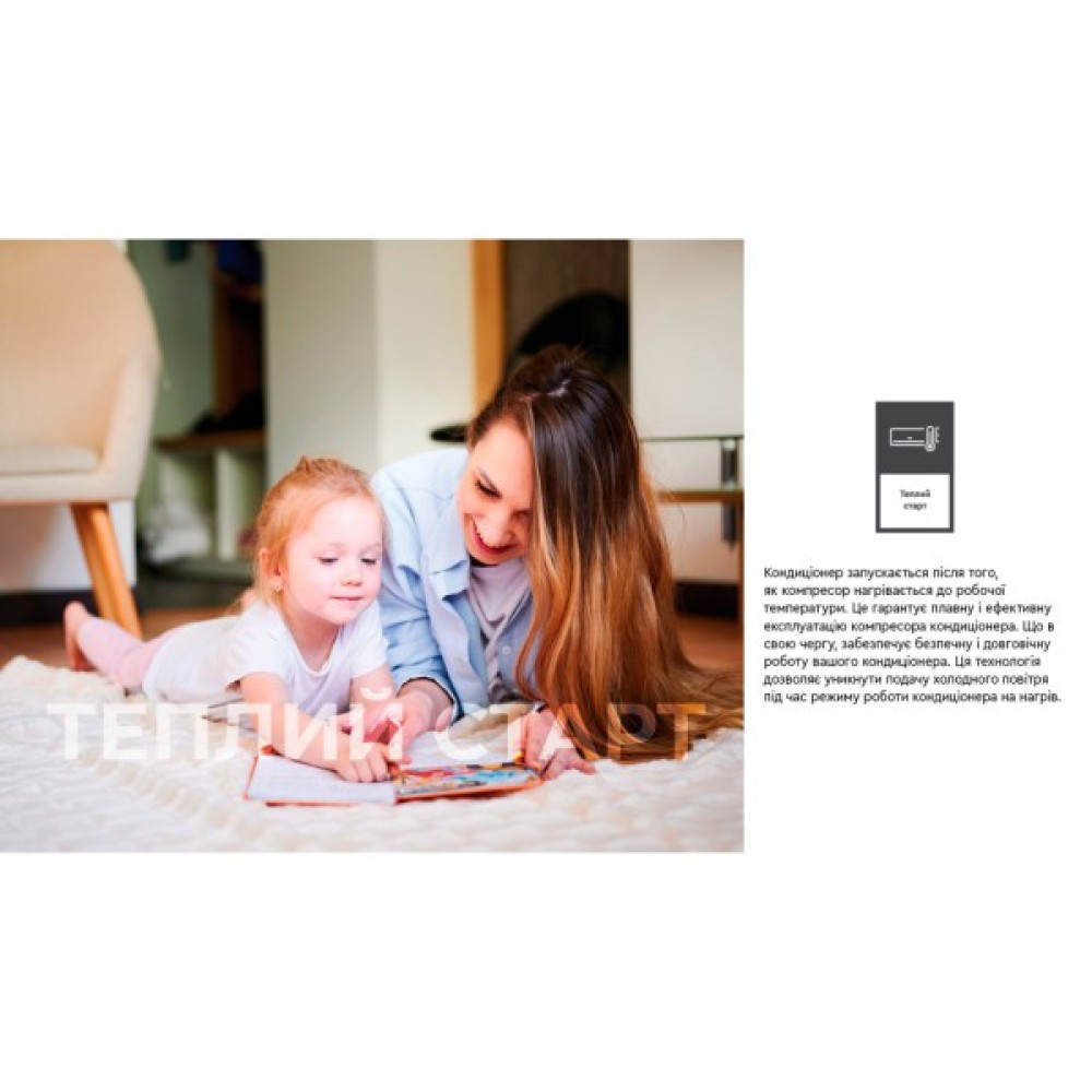 Кондиціонер використовує екологічний фреон R32, що знижує негативний вплив на навколишнє середовище та покращує теплову ефективність системи. Вбудований дисплей дозволяє зручно переглядати налаштування та поточний режим роботи, не вимагаючи додаткових маніпуляцій.