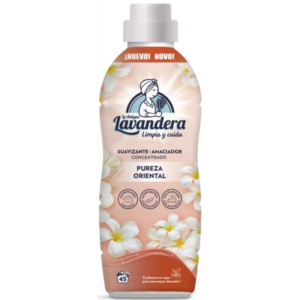Кондиціонер для білизни Lavandera Східна чистота від іспанського виробника не залишить нікого байдужим. Ніжний квітковий аромат засобу проникає в найпотаємніші мрії та відносить у далеку східну казку. Кондиціонер має гарну здатність пом'якшувати і згладжувати тканини, тому ви отримуєте не тільки приємний аромат, а й легке прасування. Засіб дуже економічний і концентрований, пляшки ємністю 1 літр вистачає на 45 прань. Спробуйте європейську якість за доступною ціною від бренду La Antigua Lavandera