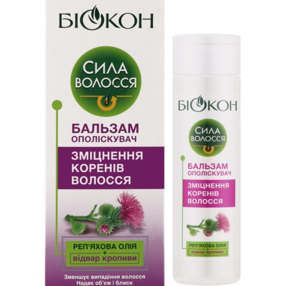 Бальзам-ополіскувач «Зміцнення коренів волосся» із серії «Сила волосся» від «Біокон»: