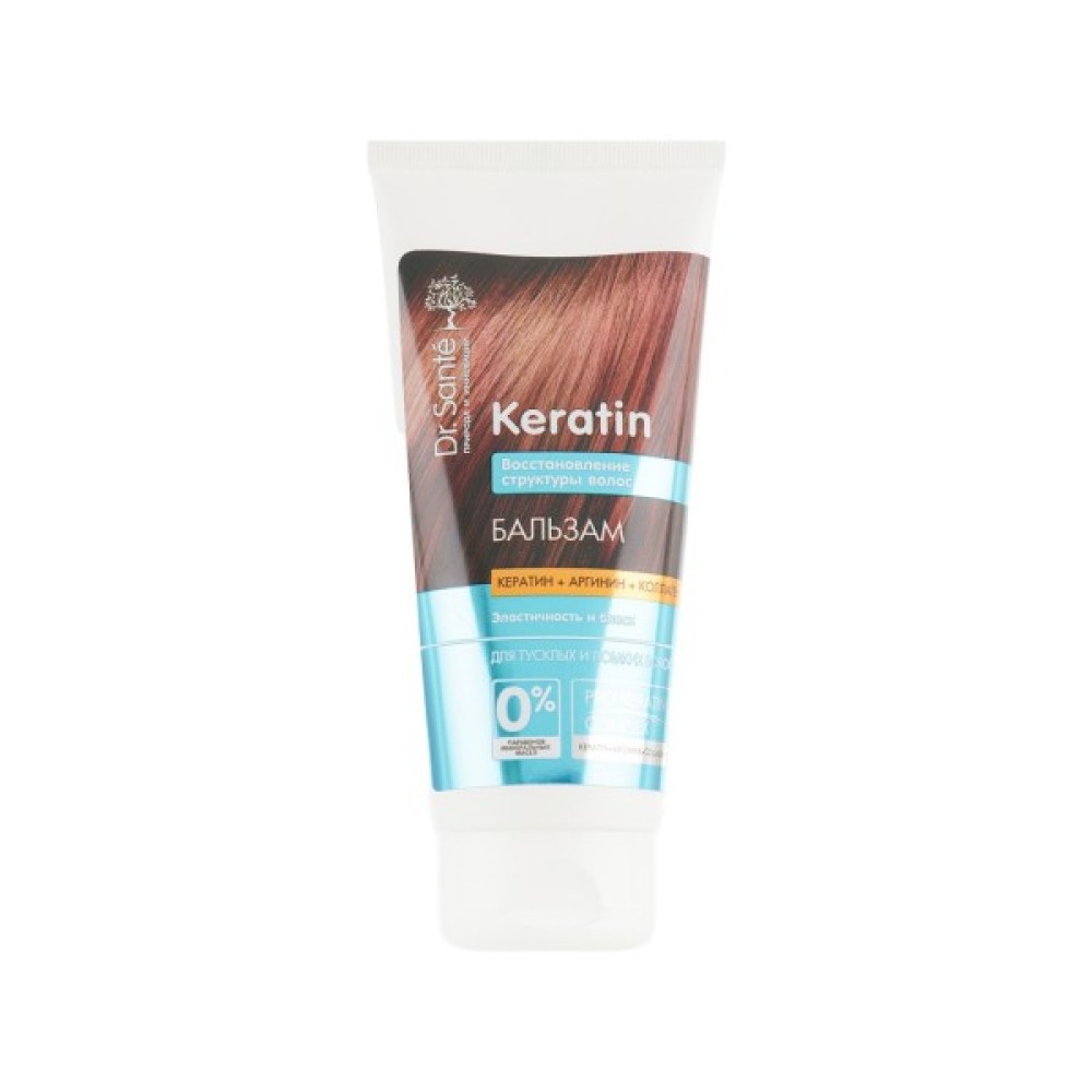 Для повноцінного відновлення та живлення ламкого, пошкодженого і сухого волосся скористайтесь ефективним і якісним бальзамом для волосся з кератином Keratin Balm від української торгової марки Dr.Sante. Цей бальзам чудово зволожує, живить і захищає волосся від агресивного впливу навколишнього середовища, а також перешкоджає його руйнуванню при постійному використанні засобів для укладання. Інноваційна формула бальзаму містить протеїн, кератин і УФ-фільтри, які повернуть вашим пасмам силу, блиск і сяйво.