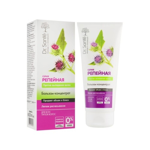 Немає нічого гіршого, ніж ослаблене волосся, яке втрачає силу і блиск, починає ламатися і випадати. Але зневірятися рано! Українські косметологи пильнують за жіночою красою, створюючи нові спеціальні відновлювальні засоби для ваших локонів. Поверніть своєму волоссю силу і густоту за допомогою бальзаму-концентрату з реп’яхової серії від компанії Dr.Sante. Унікальна формула засобу активно впливає на структуру волосся, забезпечуючи глибоке відновлення.