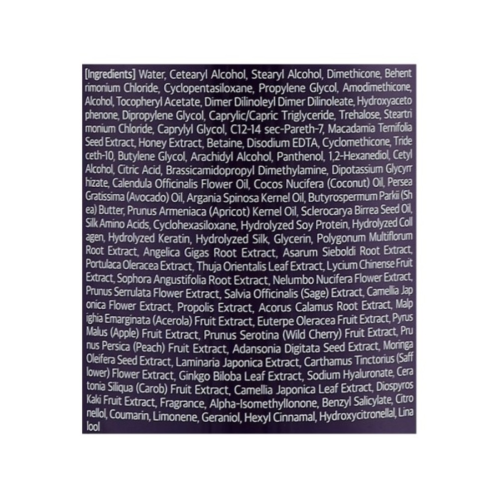 Склад Water, Cetearyl Alcohol, Stearyl Alcohol, Dimethicone, Behent rimonium Chloride, Cyclopentasiloxane, Propylene Glycol, Amodimethicone, Alcohol, Tocopheryl Acetate, Dimer Dilinoleyl Dimer Dilinoleate, Hydroxyaceto phenone, Dipropylene Glycol, Caprylic/Capric Triglyceride, Trehalose, Steartri monium Chloride, Caprylyl Glycol, C12-14 sec-Pareth-7, Macadamia Ternifolia Seed Extract, Honey Extract, Betaine, Disodium EDTA, Cyclomethicone, Tride ceth-10, Butylene Glycol, Arachidyl Alcohol, Panthenol, 1