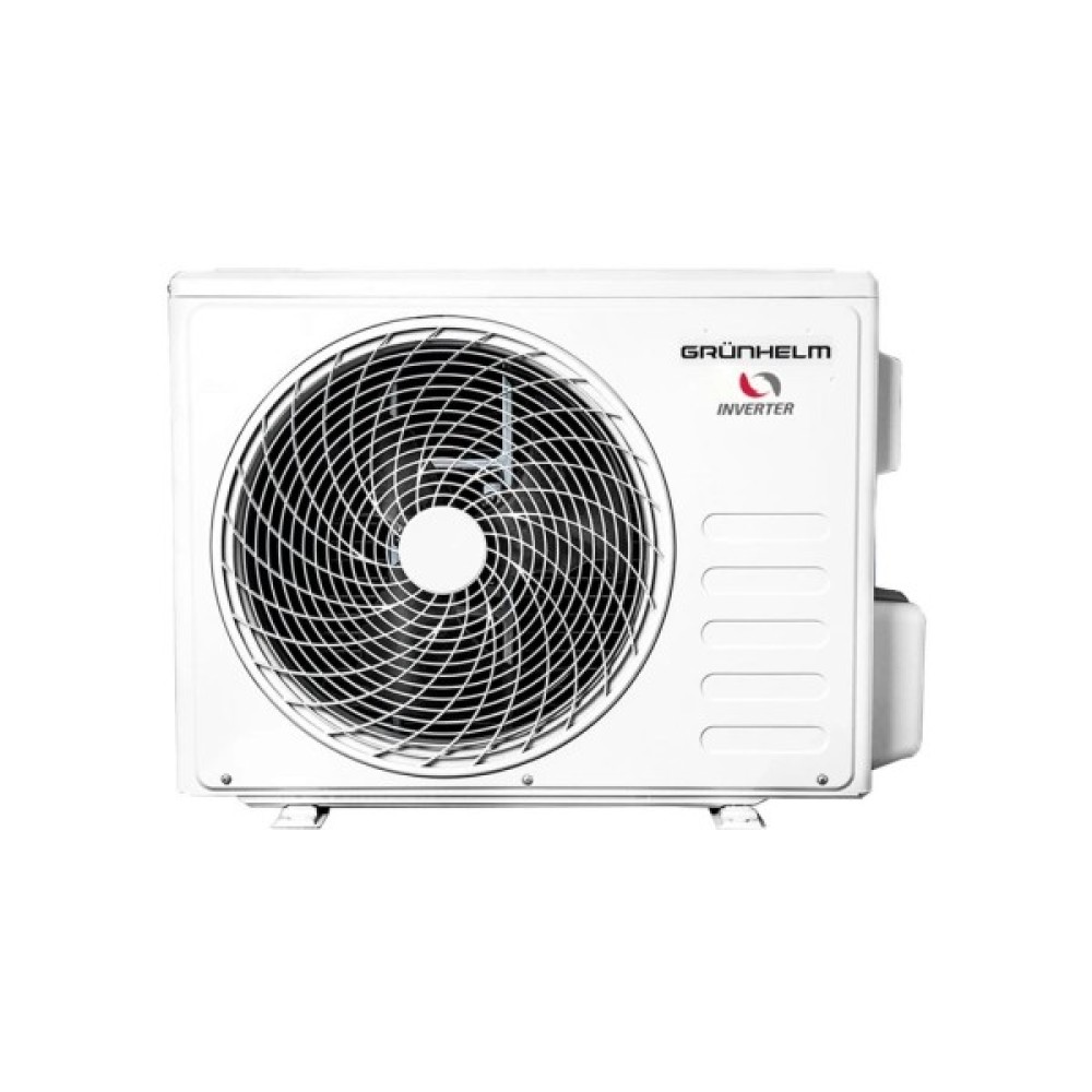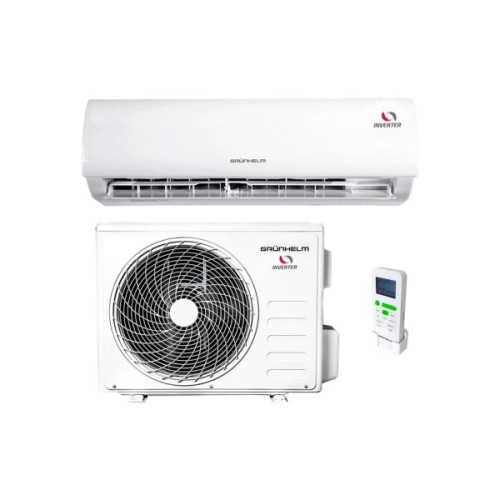 Спліт-система GRUNHELM GAC-24GH-I працює від інверторного двигуна, де внутрішній блок встановлюється на стіну в приміщенні площею до 70 м², а зовнішній на вулицю, при цьому довжина магістралі може досягати максимально 15 м. Електронний дисплей з відображенням функцій та температури керується дистанційно. Використовується безпечний для озону безхлорний фреон R410A, який є у вільному доступі. У конструкції використовується якісний продуктивний компресор SANYO. Теплова продуктивність становить 7180 Вт за умови споживання 1985 Вт, холодильна 7030 Вт за умови споживання 2190 Вт.