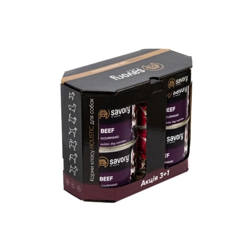 Набір вологих кормів Savory Gourmand "3+1" з яловичиною — ще більше задоволення для вашого улюбленця!