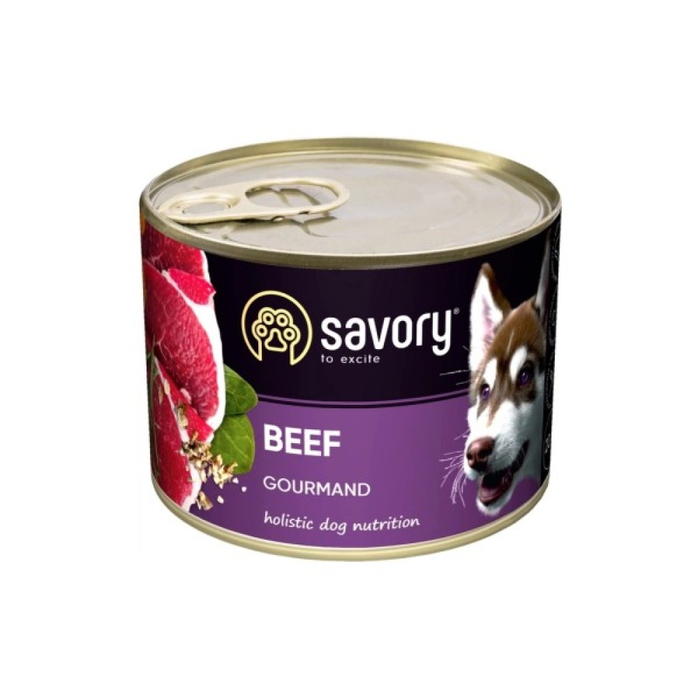 У набір входить повнораціонний вологий корм із яловичиною для дорослих собак усіх порід. Поєднання добірних натуральних інгредієнтів дозволяє дбати про здоров'я улюбленця, а вишуканий смак — дарувати йому насолоду від щоденного споживання корму Savory. Яловичина — це джерело білків і амінокислот, завдяки яким собака буде бадьорим і чудово почуватиметься.