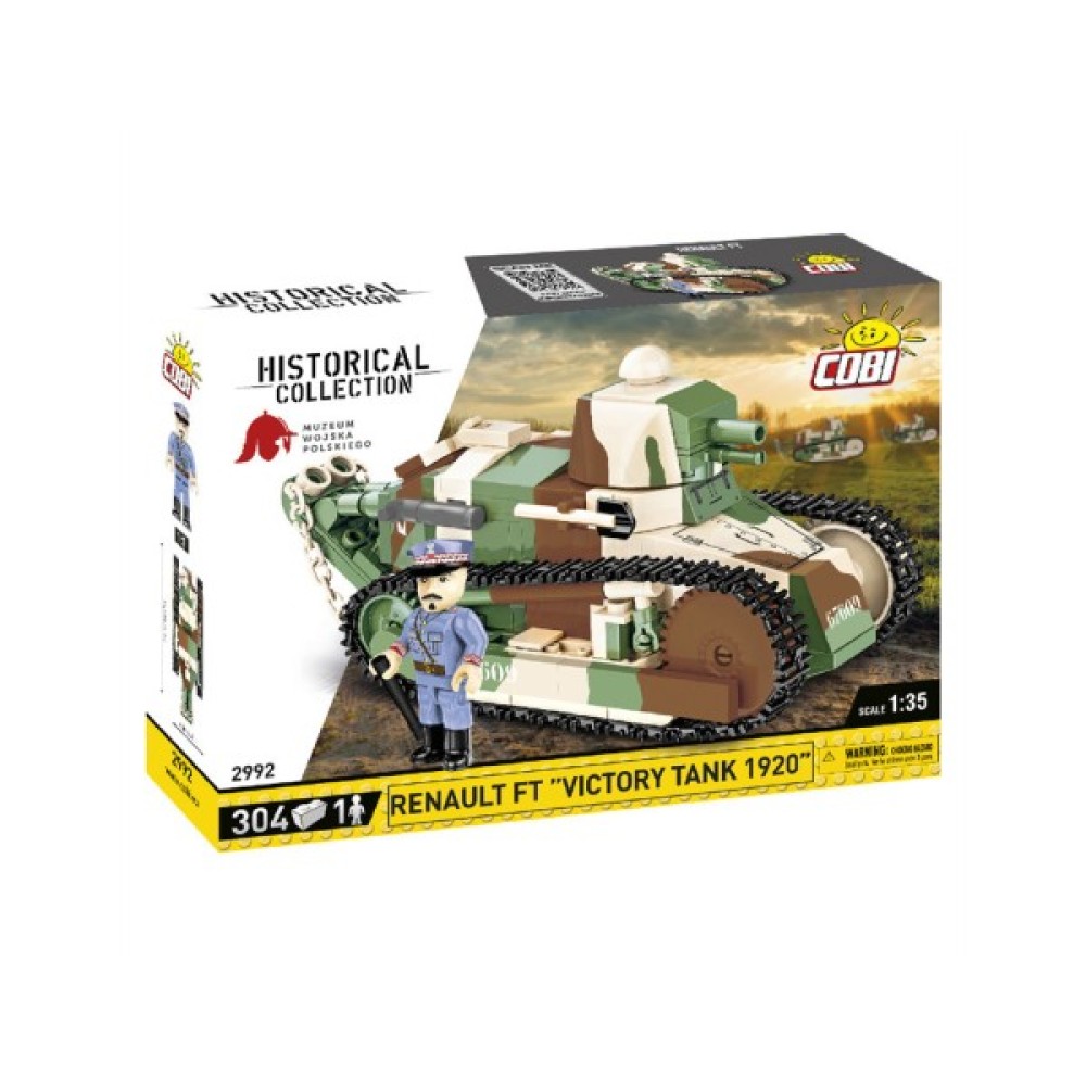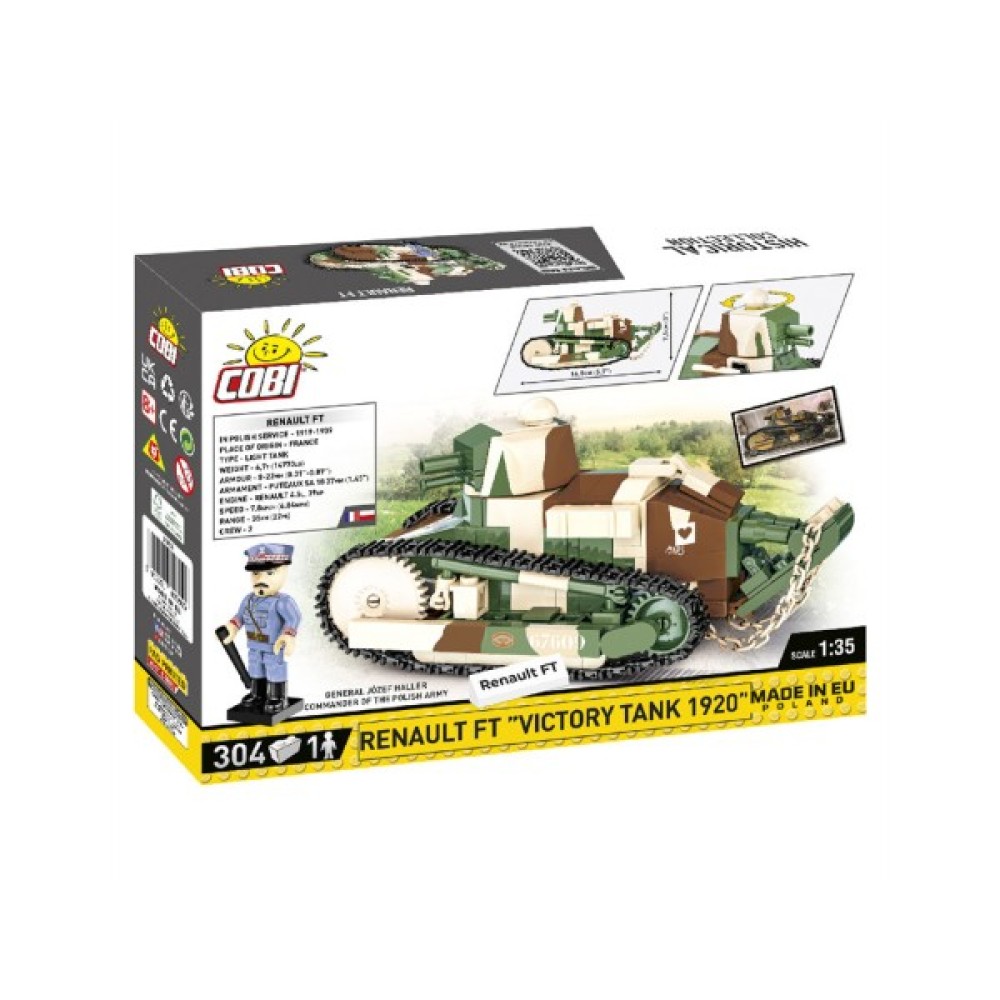 Конструктор "Cobi Перша Світова Війна Танк Рено FT-17 Перемога" — ідеальний вибір для юних будівельників та любителів військової історії. Цей автоконструктор складається з 304 деталей, що дозволяють втілити в життя легендарний французький легкий танк часів Першої світової війни. Розроблений у 1917 році, був еталонним для майже всіх наступних конструкцій бронемашин. Завдяки детальному відтворенню розпису та розмітки, ця модель ідеально підійде для колекції серії Cobi GREAT WAR.