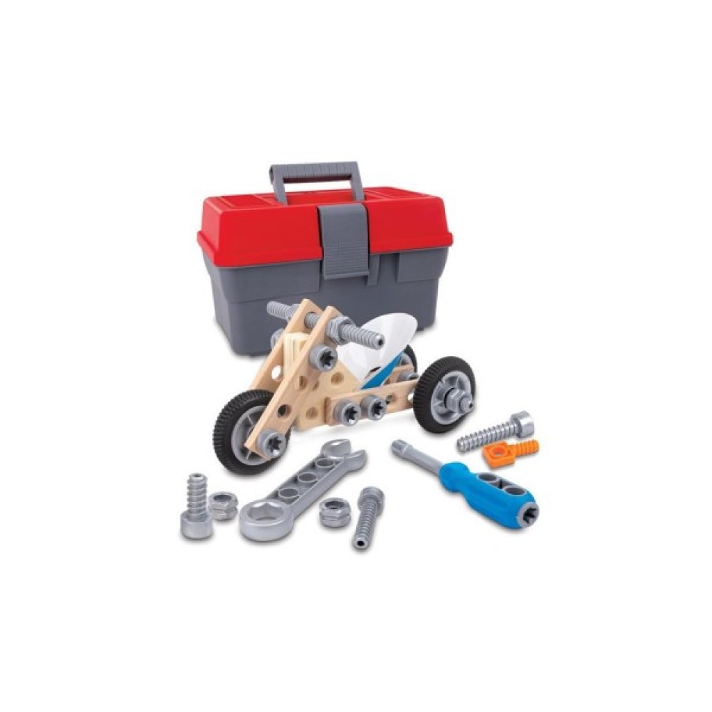 Цей механічний конструктор не лише розвиває зорово-моторну координацію і дрібну моторику, але й сприяє навичкам вирішення завдань та здатності дотримуватися інструкцій. Діти отримають задоволення від процесу складання, а також гордість від власноруч створеного мотобайка. Конструктор iдеально поєднується з іншими наборами Hape, відкриваючи двері до безмежної уяви та творчості вашої дитини.