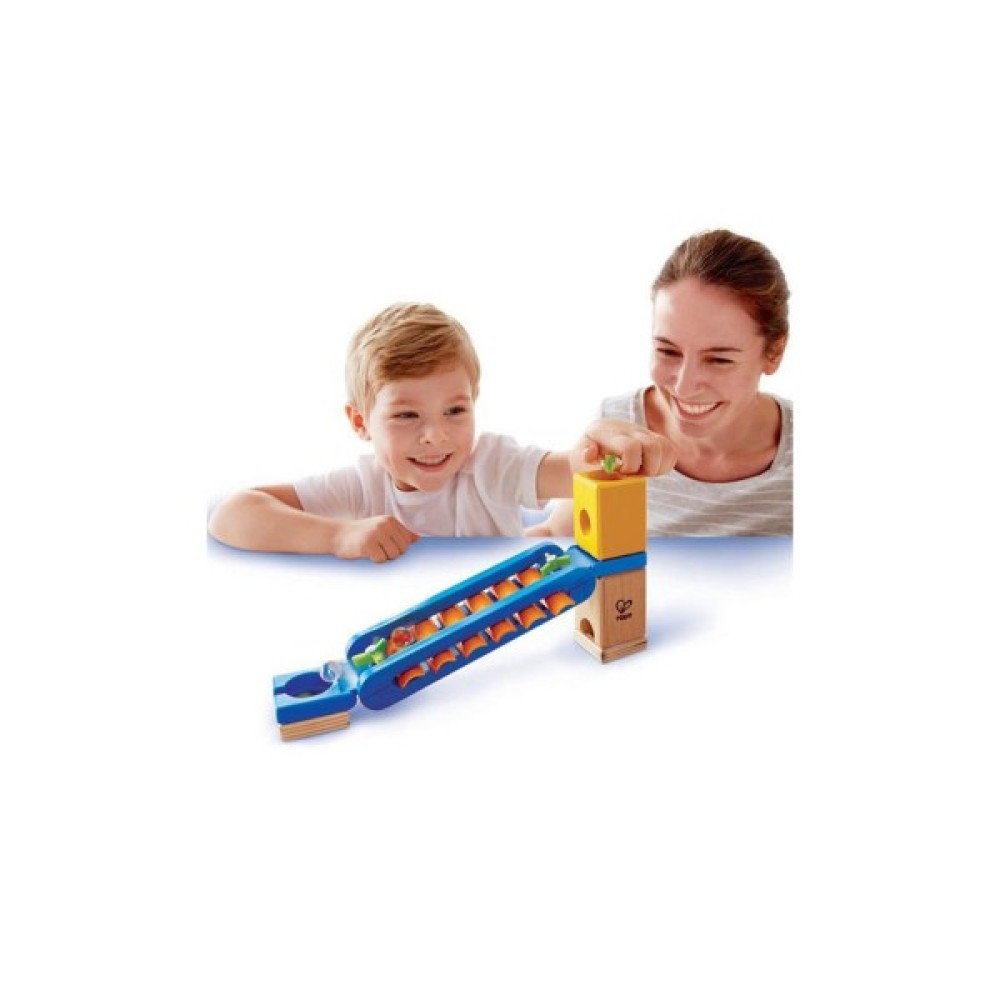 Конструктор містить 13 високоякісних деталей, виготовлених з металу, текстилю, пластику, дерева та скла. Основна особливість набору — це можливість створення креативного лабіринту, додавши звукову складову через вбудований ксилофон. Під час спуску кульок музичний інструмент створює чарівні звуки, перетворюючи гру в захоплюючий концерт. Це не тільки розважає, а й сприяє розвитку дитини.