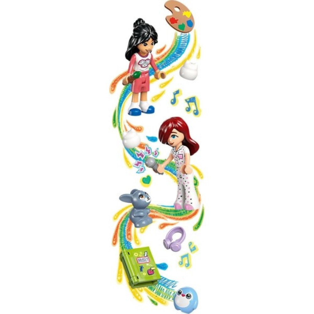 Діти зможуть зібрати затишну кімнату, наповнену цікавими елементами, як-от гітари, мікрофони та динаміки, для відтворення різноманітних музичних сцен. LEGO Friends активно сприяє розвитку художніх навичок завдяки статуеткам для розмальовування, а також соціальних та емоційних здібностей, адже передбачає інтерактивні ігри з доглядом за домашніми тваринами.