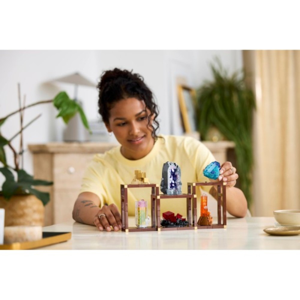 Цей набір, створений дизайнерами-фанатами LEGO, переміг у голосуванні прихильників серії LEGO Ideas, що робить його по-справжньому особливим. Використовуйте прозорі кубики та інноваційні методи конструювання, щоб передати природний блиск кожного мінералу.