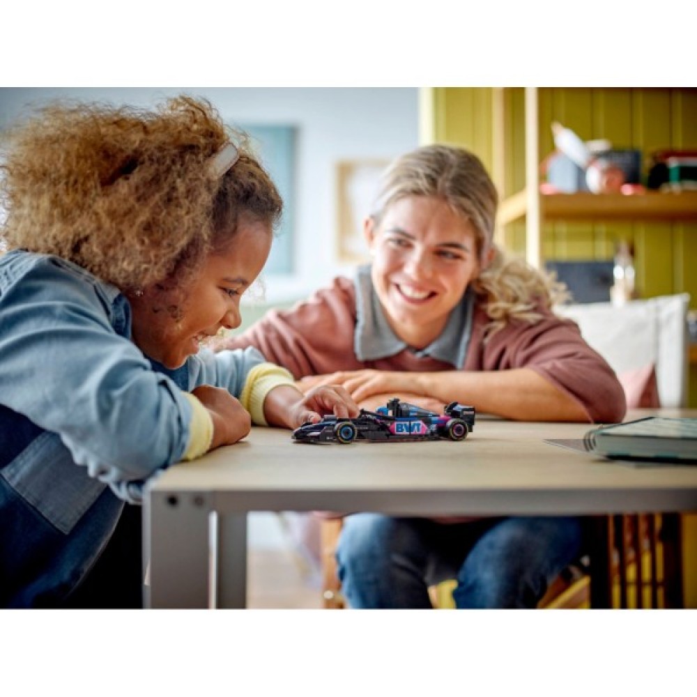 Особливу увагу приділено відкриваючомуся кокпіту з рухливою системою гало, що перетворює звичайну гру на захоплюючу пригоду. Мініфігурка водія в костюмі Alpine ще більше підкреслює реалістичність конструкції, готова рушати на трасу і впевнено долати виклики гонок.