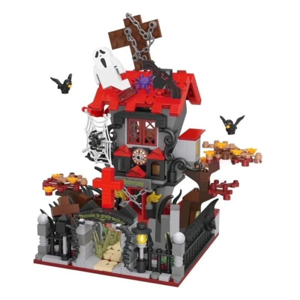 Цей конструктор дарує можливість зосередитися на створенні масштабних конструкцій, не відволікаючись на комплектуючі фігурки. Створіть свою святкову атмосферу Хеллоуїна, зібравши загадковий будинок із павутиння та світлових ефектів, що надають шаленої чарівності вашому інтер'єру.