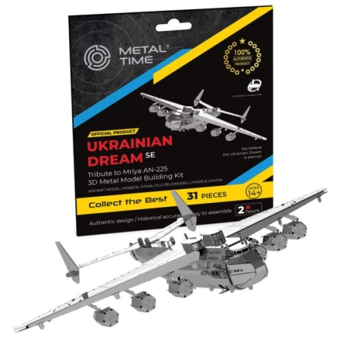 Конструктор Metal Time колекційна модель Ukrainian Dream Official SE (MT001SE) — це вражаючий приклад мистецтва та інженерії, що втілює в собі легендарний літак "Мрія". Цей 3D-конструктор дозволяє своїми руками відтворити надію та натхнення, які несла українська "Мрія", виступаючи символом сили та стійкості.