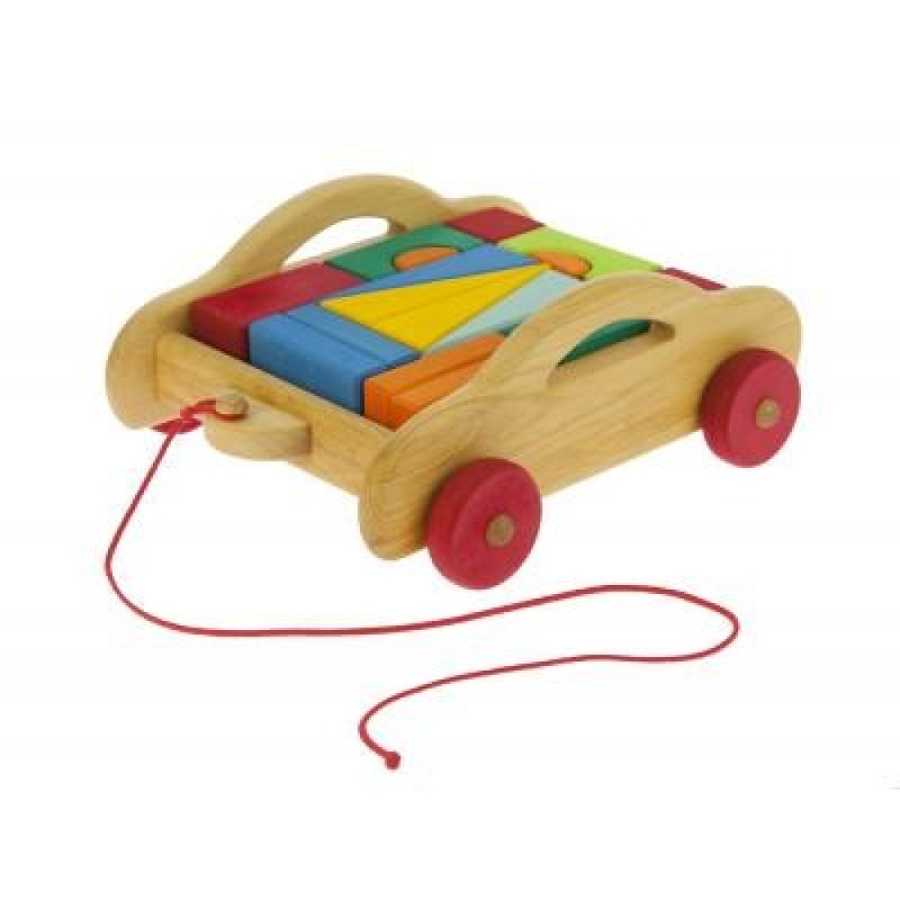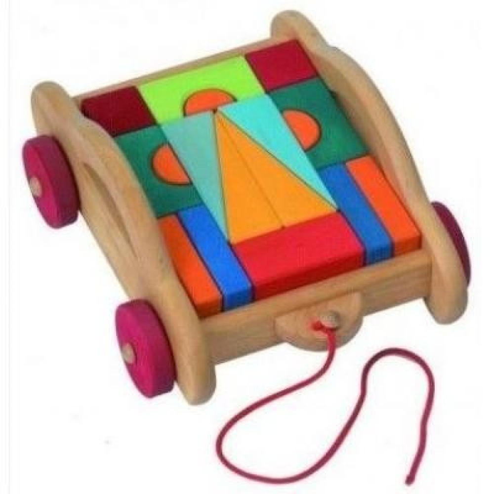 У комплекті ви отримуєте дерев'яний візочок, в якому зручно переміщати 17 елементів конструктора. Деталі виготовлені з високоякісної натуральної деревини і покриті кольоровими фарбами на водній основі, що абсолютно безпечно для вашої дитини. Унікальний модуль візочка оснащений зручними ручками й червоною мотузкою довжиною 65 см для ще зручнішого транспортування.