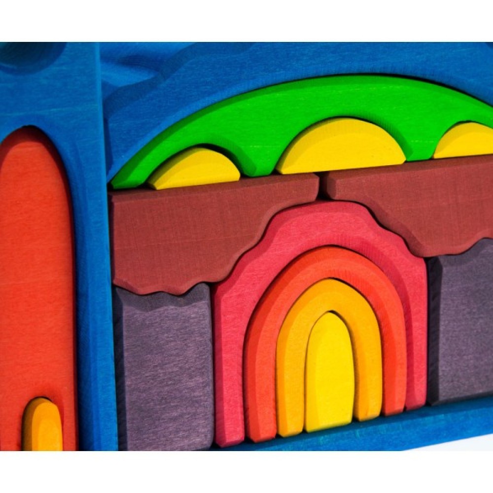 Всі елементи набору виготовлені з високоякісного натурального дерева, що є не тільки екологічно безпечним, але й надає приємні тактильні відчуття. Деревина ретельно оброблена, а деталі вкриті нетоксичними фарбами на водній основі, які не забарвлюють шкіру та залишаються яскравими протягом довгого часу.