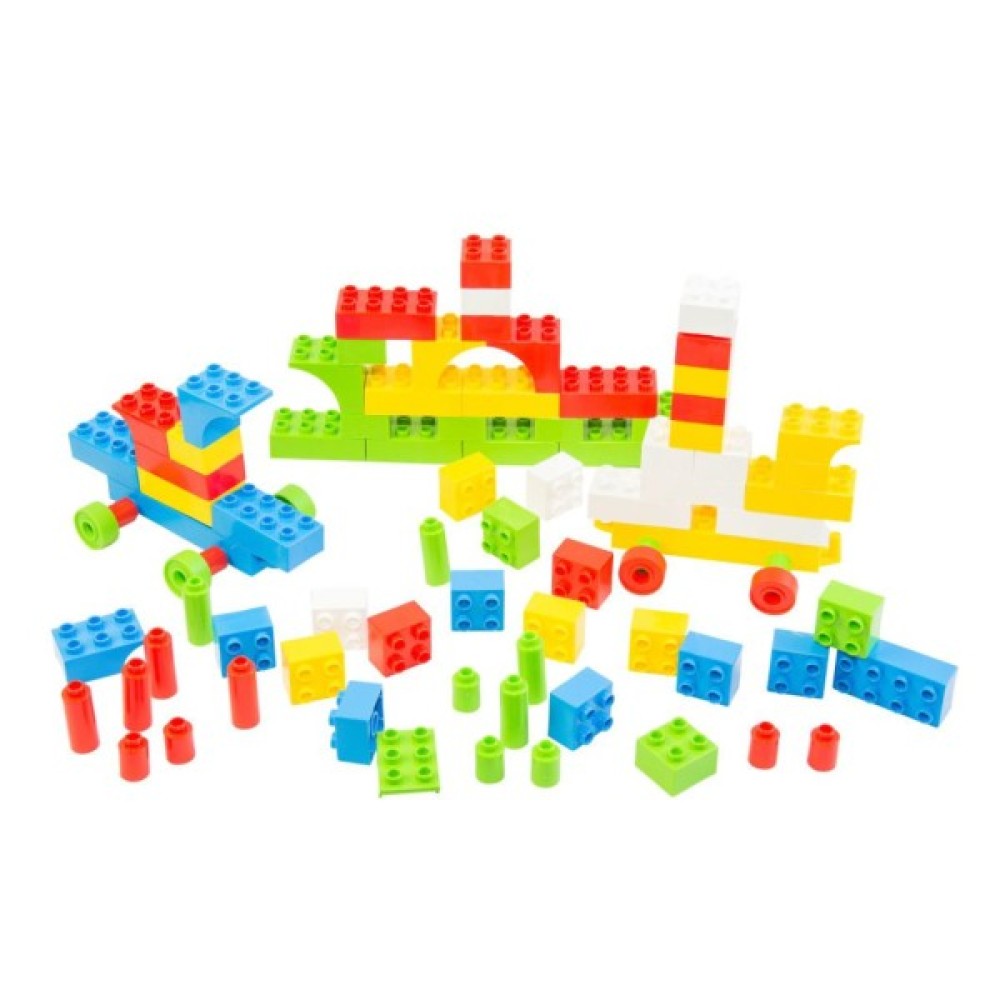Всі 93 елементи цього конструктора виготовлені з високоякісного пластику, який не має гострих країв, що гарантує максимальну безпеку під час гри. Завдяки своїм заокругленим формам, деталі зручно тримати в руках, а барвисті кольори – рожевий, бірюзовий, жовтогарячий, фіолетовий і жовтий – викликають у дітей захоплення та сприяють вивченню спектра кольорів.