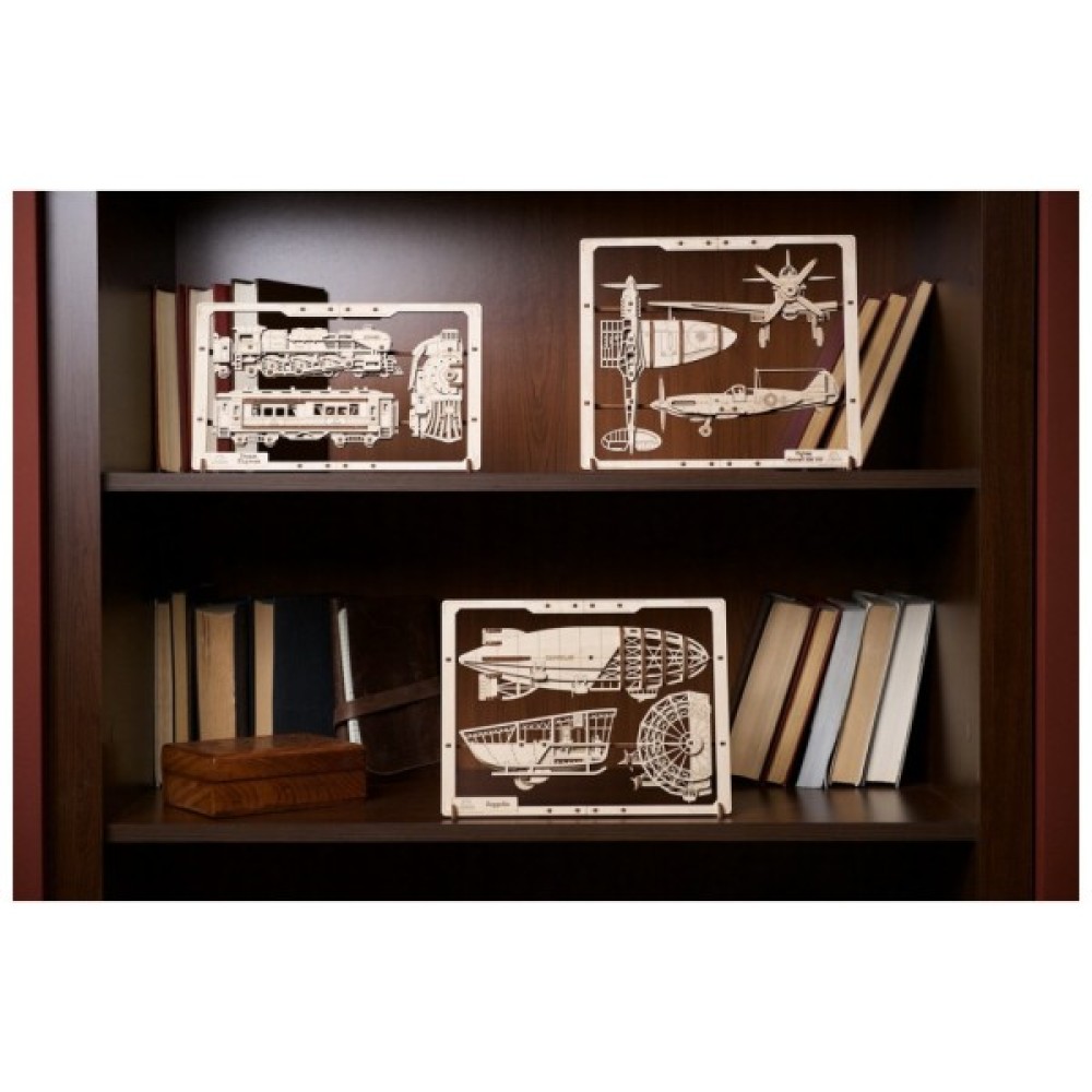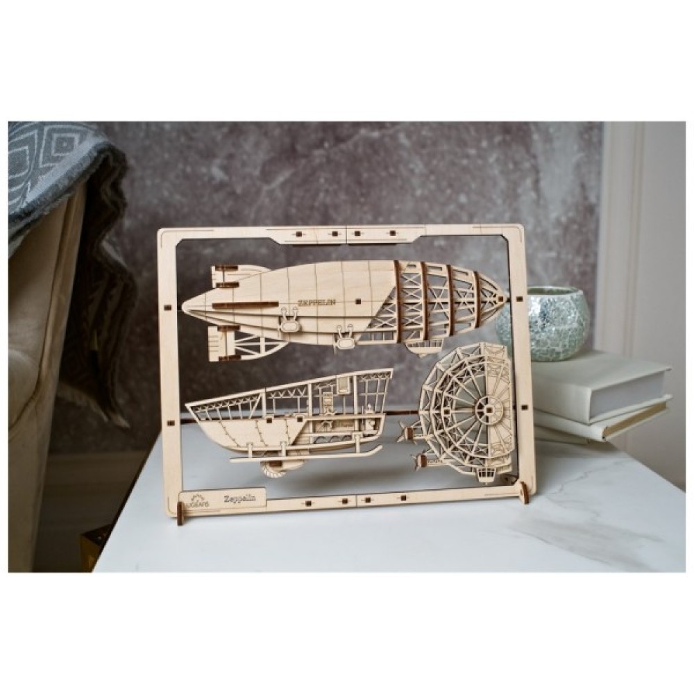 Конструктор включає 49 деталей, виготовлених із стійкого дерева, що гарантує тривалість у використанні. Особливістю цієї моделі є рухомі елементи та вбудована рамка, які дозволяють не лише насолодитися процесом складання, але й легко інтегрувати цепелін у ваш інтер'єр. Вона стане не лише частиною вашої колекції, але й стильним декоративним елементом на стіні або полиці.