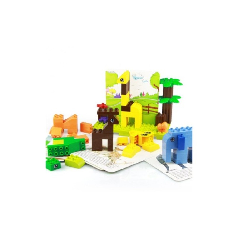 Набір нараховує 58 деталей, які легко і безпечно з'єднуються, що робить його підходящим для дітей від 3 років. Завдяки спеціально розробленім карткам, малюки можуть вивчати назви і характеристики тварин англійською мовою, розвиваючи тим самим не лише дрібну моторику, а й мовні навички. На шести картках представлено інформацію про різних представників фауни, котра наштовхує на нові запитання та відкриття.