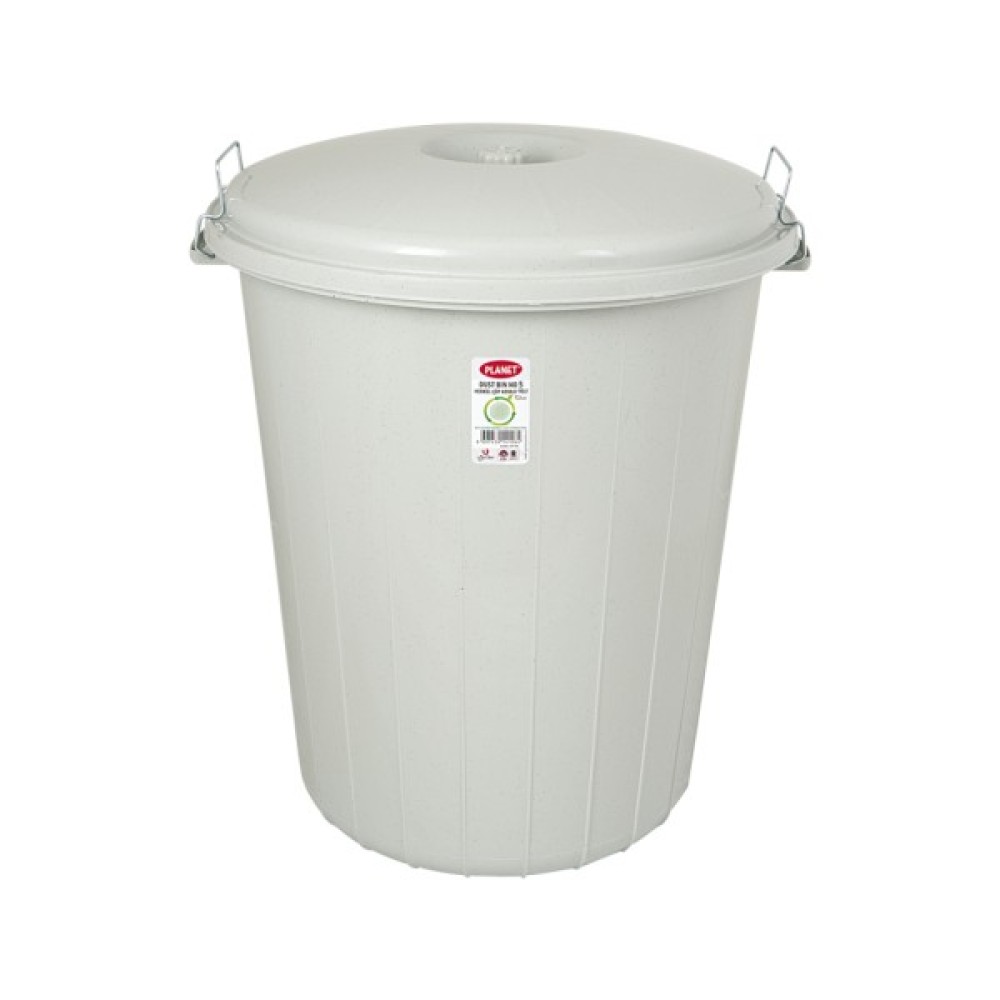 Бак для сміття Planet №5 90 л з кришкою. Перевагою даного бака є довговічні металеві затиски-замки. Використовується для збору побутових відходів. Дуже добре підходить для використання як усередині приміщень, так і на вулиці.