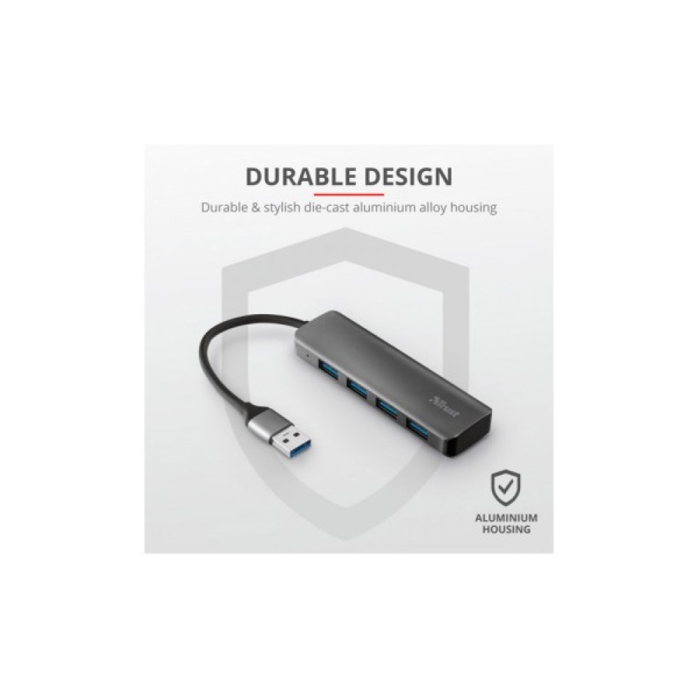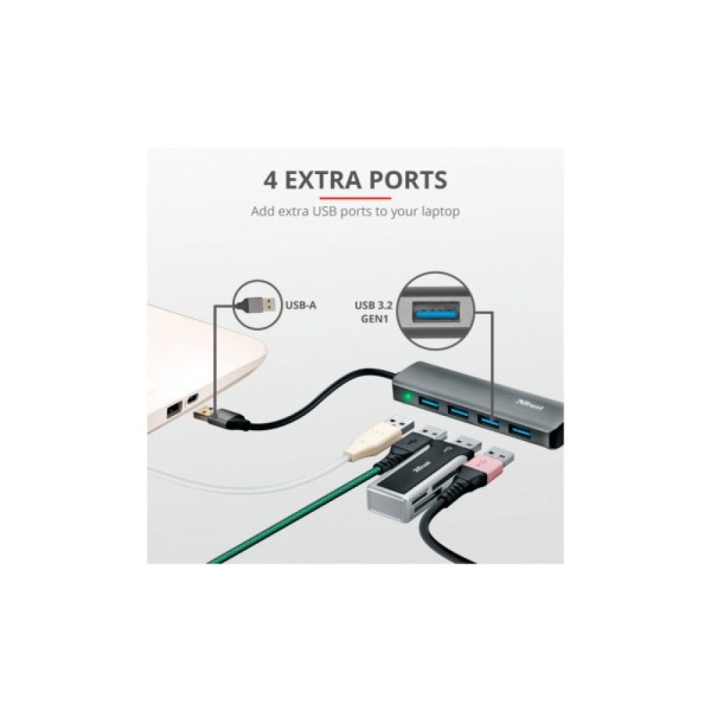 Trust Halyx 4 Port USB 3.2 стильний алюмінієвий USB-концентратор додає до вашого комп'ютера 4 додаткові порти USB-A зі швидкістю 5 Гбіт/с