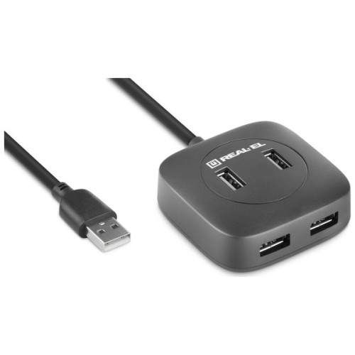 Довжина кабелю становить 1,2 метра, що забезпечує зручність підключення в будь-яких випадках. REAL-EL HQ-177 оснащений чотирма портами USB 2.0, що дозволяють підключати декілька пристроїв одночасно, забезпечуючи швидкість передачі даних до 480 Мбіт/с. Компактний дизайн розміром 60 х 60 х 22 мм та вагою всього 80 грамів робить цей концентратор ідеальним для використання як вдома, так і в офісі.