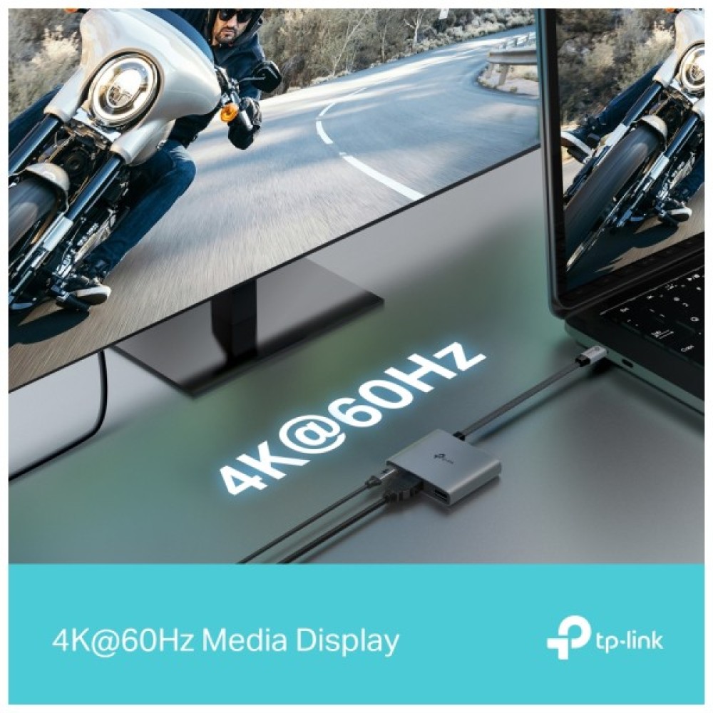 TP-LINK UH3020C — компактний USB-C концентратор 3-в-1, що перетворює один порт на HDMI 4K@60 Гц, USB-A 3.0 та USB-C з підтримкою заряджання 100 Вт. Він дозволяє під’єднати зовнішній монітор із високою чіткістю, передавати дані зі швидкістю до 5 Гбіт/с і заряджати ноутбук одночасно з роботою.