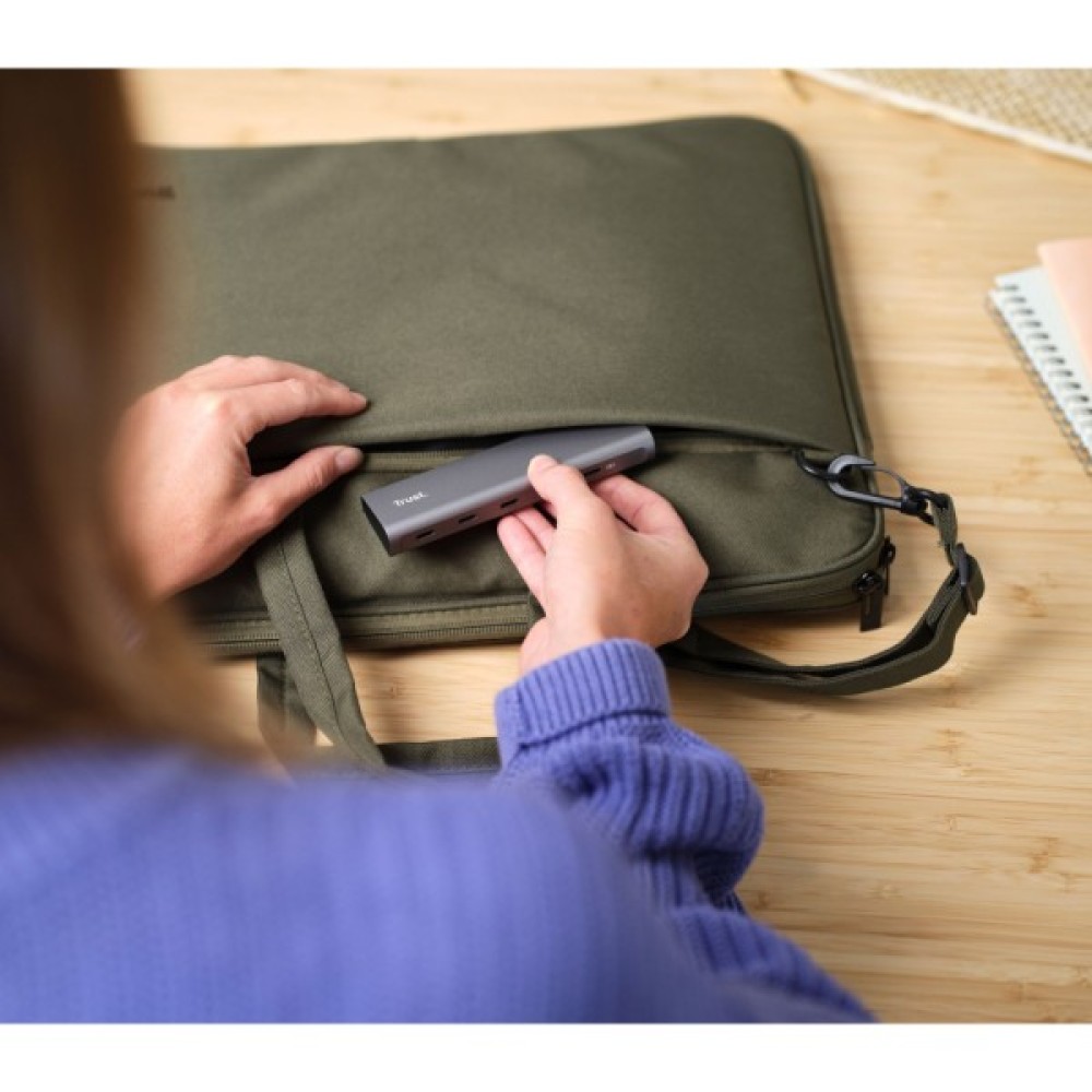 З USB-хабом Trust Halyx ви отримуєте доступ до 4 портів USB 3.2 Gen. 1 і 1 порту USB-C PD, що дає змогу одночасно під'єднати кілька пристроїв і заряджати ваш пристрій через USB-C PD.