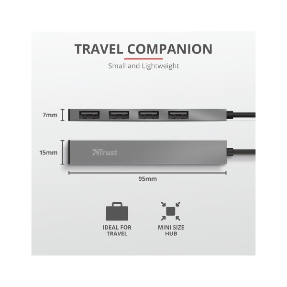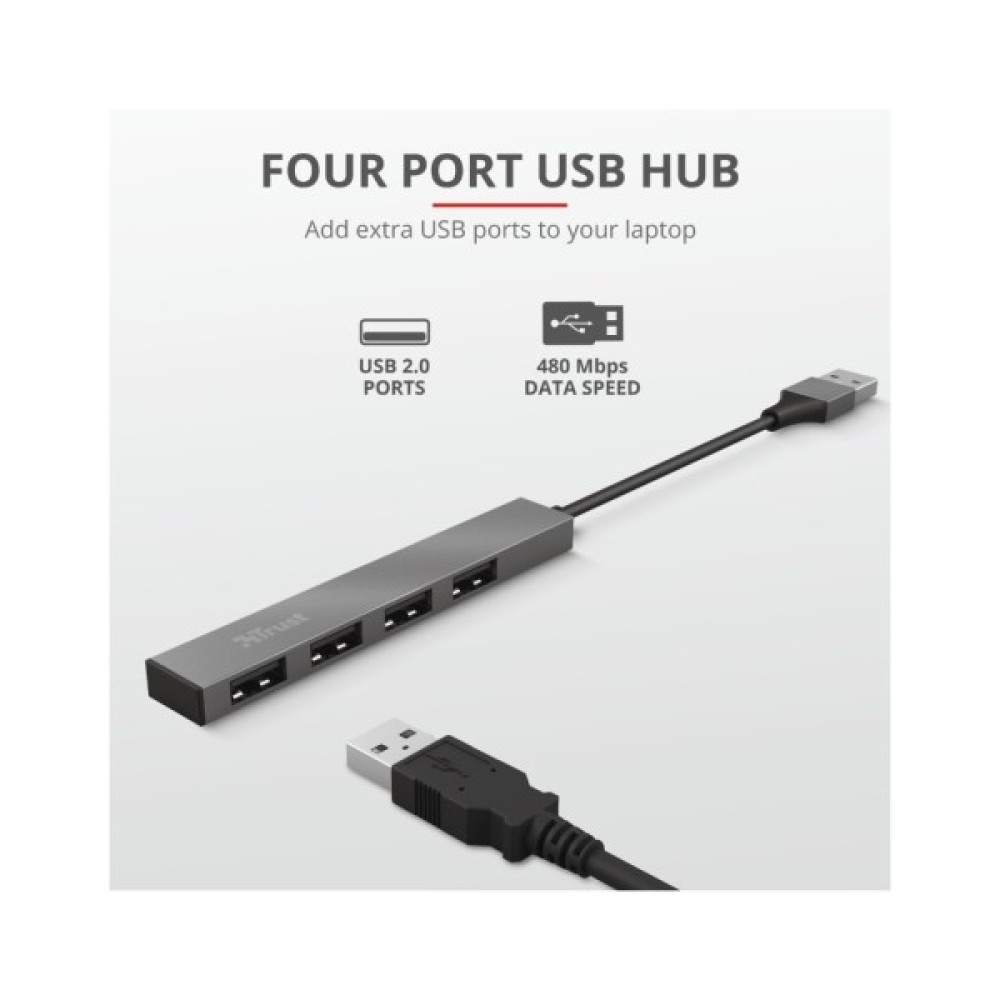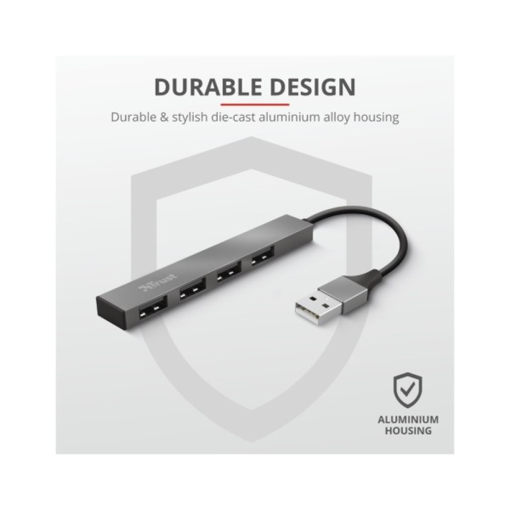 Концентратор, Trust, Halyx, Aluminium, 4Port, Mini, USB, Hub, 23786TRUST