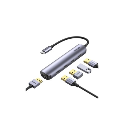 Концентратор, Ugreen, USBC, to, 4xUSB, 30, HDMI, CM417, gray, 20197