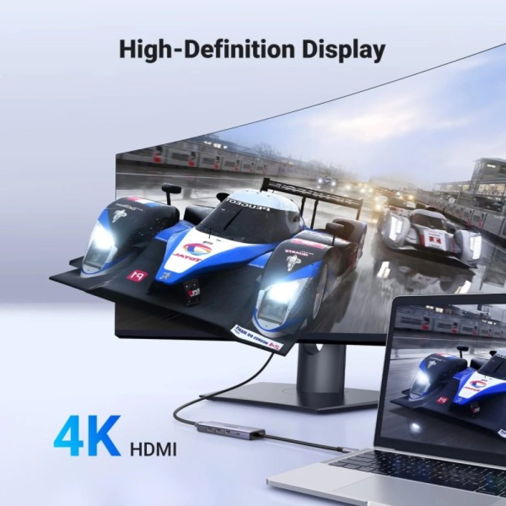 Насолоджуйтесь деталізованим і реалістичним зображенням 4K за 30 Гц на зовнішньому моніторі через порт HDMI концентратора USB C.