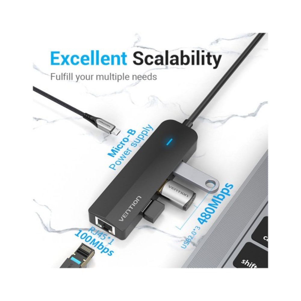 Концентратор Vention USB 3.1 Type-C to 3xUSB 2.0+MicroUSB+RJ45 100M Ethernet black (TGOBB)