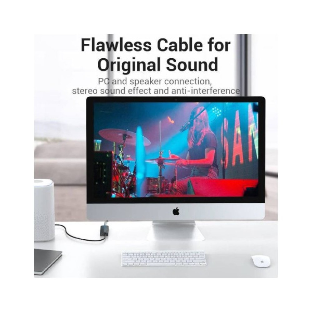 Хаб оснащений роз’ємами 3,5 мм для підключення мікрофона та навушників. Вбудована звукова карта HS100B допомагає відтворити звук відмінної якості.