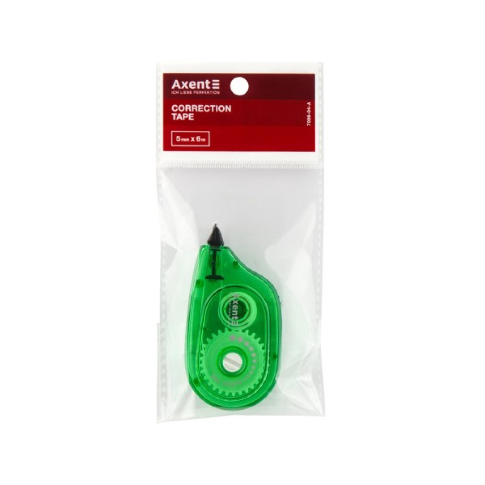 Стрічка коригуюча Axent. Дозволяє акуратно й точно коригувати текст. Можна одразу ж вносити виправлення поверх відкоригованого текста. Непомітна при копіюванні та передачі факса.