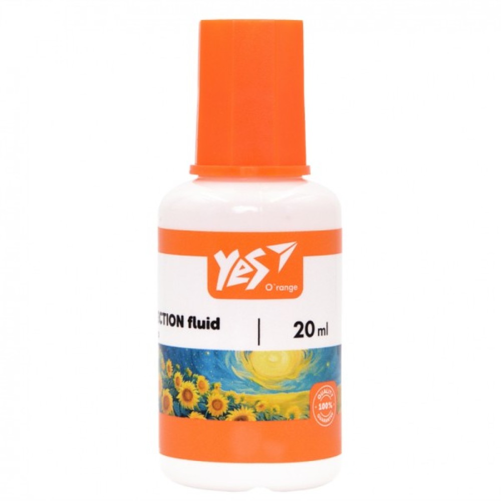 Коригувальна рідина з пензликом торгової марки Yes має високу покривну здатність, забезпечуючи відмінне покриття з першого разу, легко наноситься на папір. Пензлик з нейлону добре тримає форму, дозволяє робити акуратне нанесення.