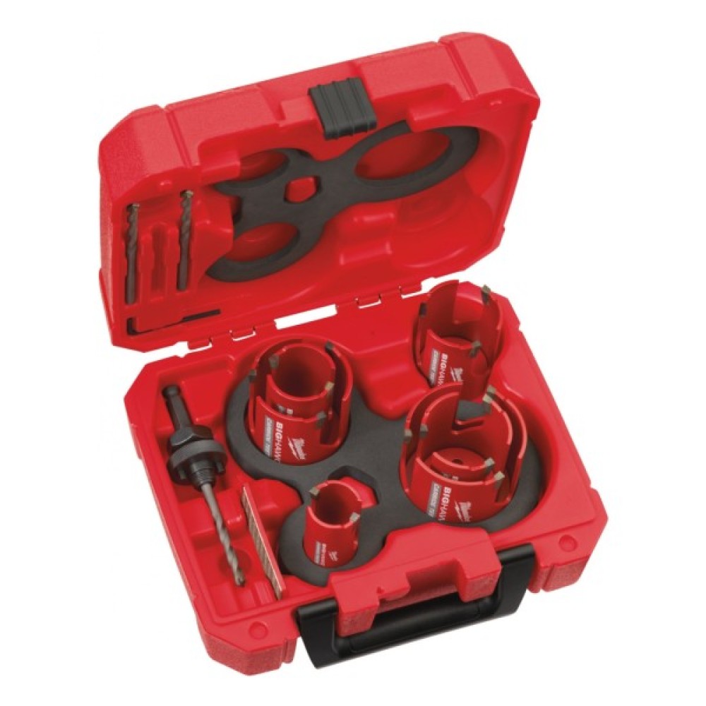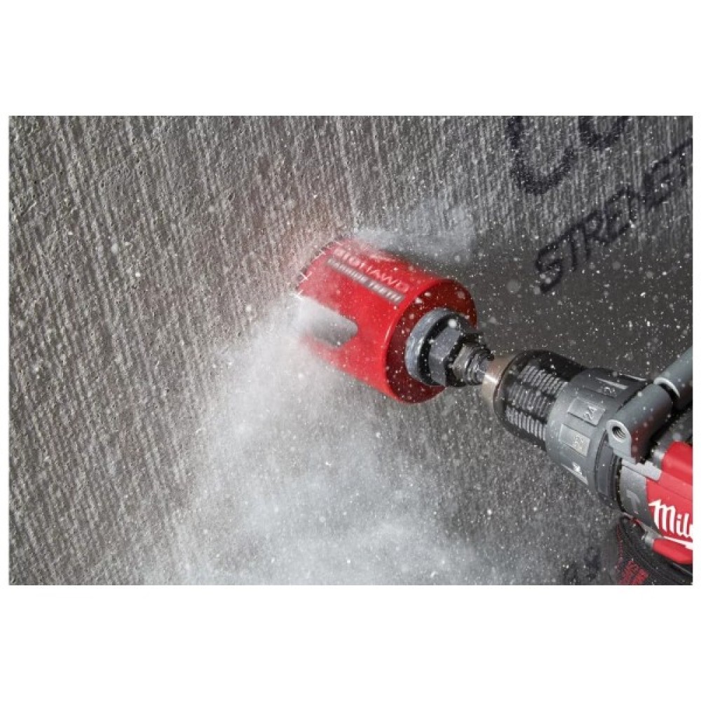 Коронки по мультиматеріалам Milwaukee BIG HAWG ідеальні для електриків, установників меблів, монтажників опалювальних, вентиляційних систем та сантехніків. Розроблені для використання в різних матеріалах. Підходить і для порожнистої та повнотілої цегли. шлакоблоки Блоки з піщанику твердістю до 30 Н/мм ДСП, ДВП, фанера, МДФ середньої твердості Пластик, ДСП із пластиковим покриттям Гіпс, штукатурка Не призначено для використання за твердими матеріалами такими як бетон, граніт, піщаник середньої та високої. твердості, натуральний камінь, цегла твердістю понад 30 Н/мм.
