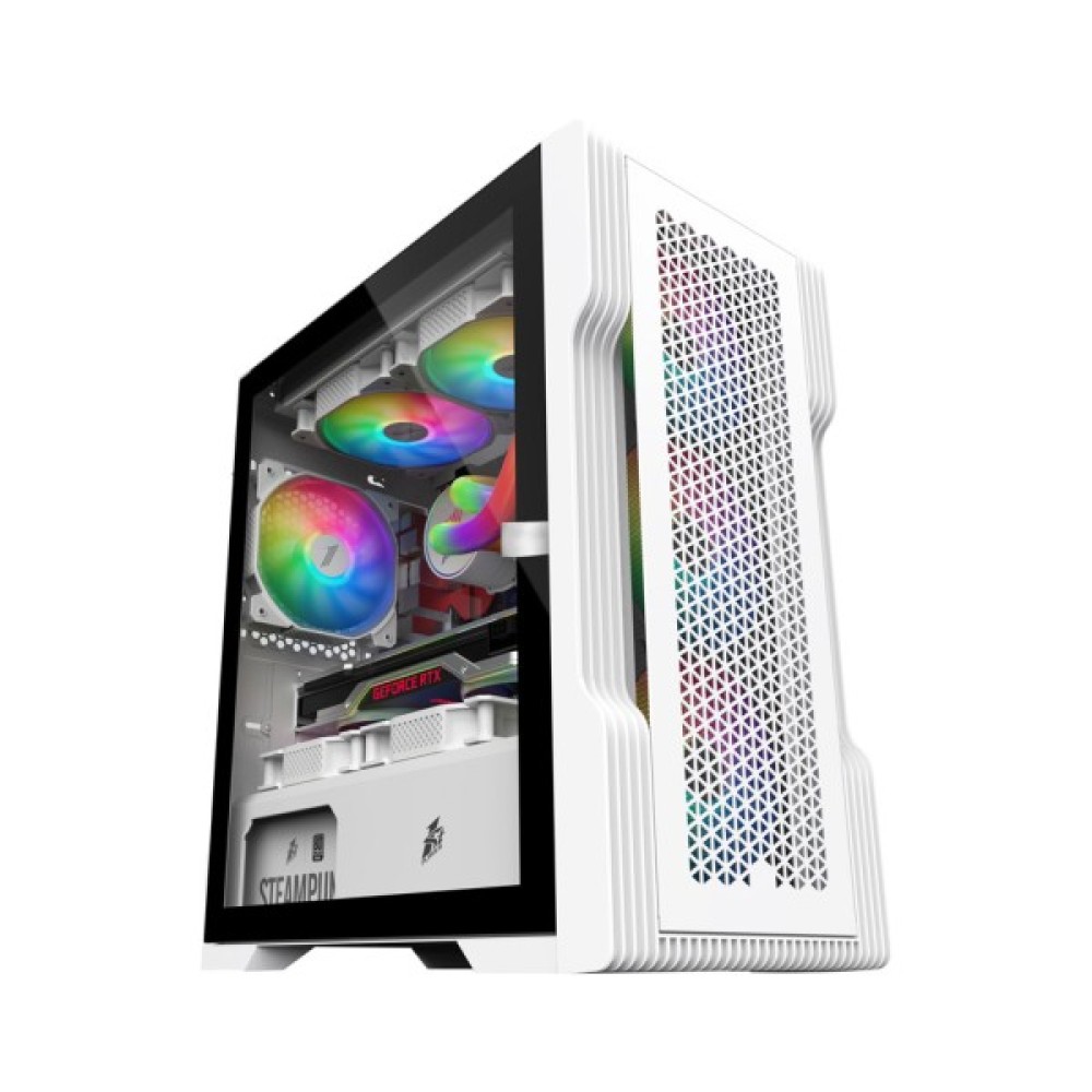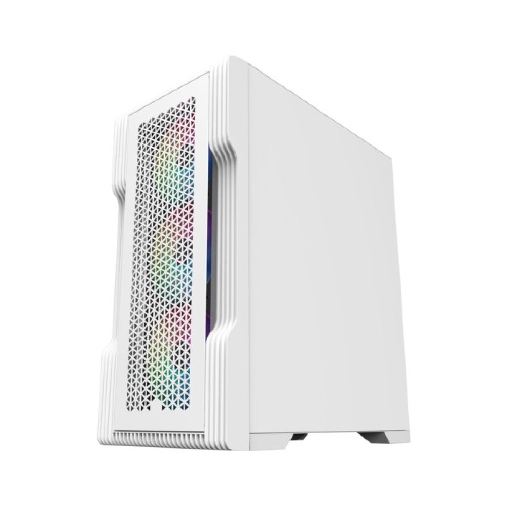 Важливим елементом конструкції є прозора бічна панель, яка дозволяє милуватися естетикою внутрішніх компонентів, підсиленою барвистим підсвічуванням вентиляторів. Це додає системі стильного вигляду та ідеально пасуватиме до будь-якого сучасного інтер'єру. Зовнішній вигляд корпусу доповнює елегантний білий колір, що надає йому вишуканості та універсальності.